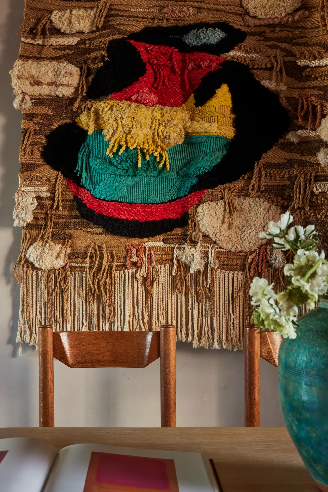 Στο κέντρο της κατοικίας δεσπόζει ο μεγάλος living area, ένας φωτεινός χώρος που ενσαρκώνει το πνεύμα της οικειότητας. Εδώ, η φωτιστική εγκατάσταση της Bec Britain δημιουργεί ένα παιχνιδιστικό διάλογο με τον τοίχο-γκαλερί που φιλοξενεί έργα τέχνης, αντικείμενα και προσωπικές συλλογές. Κάθε στοιχείο αφηγείται μια διαφορετική ιστορία, ταξίδια, εμπειρίες, στιγμές δημιουργικότητας, και συγκροτεί ένα αφήγημα γεμάτο μνήμη και αυθεντικότητα.