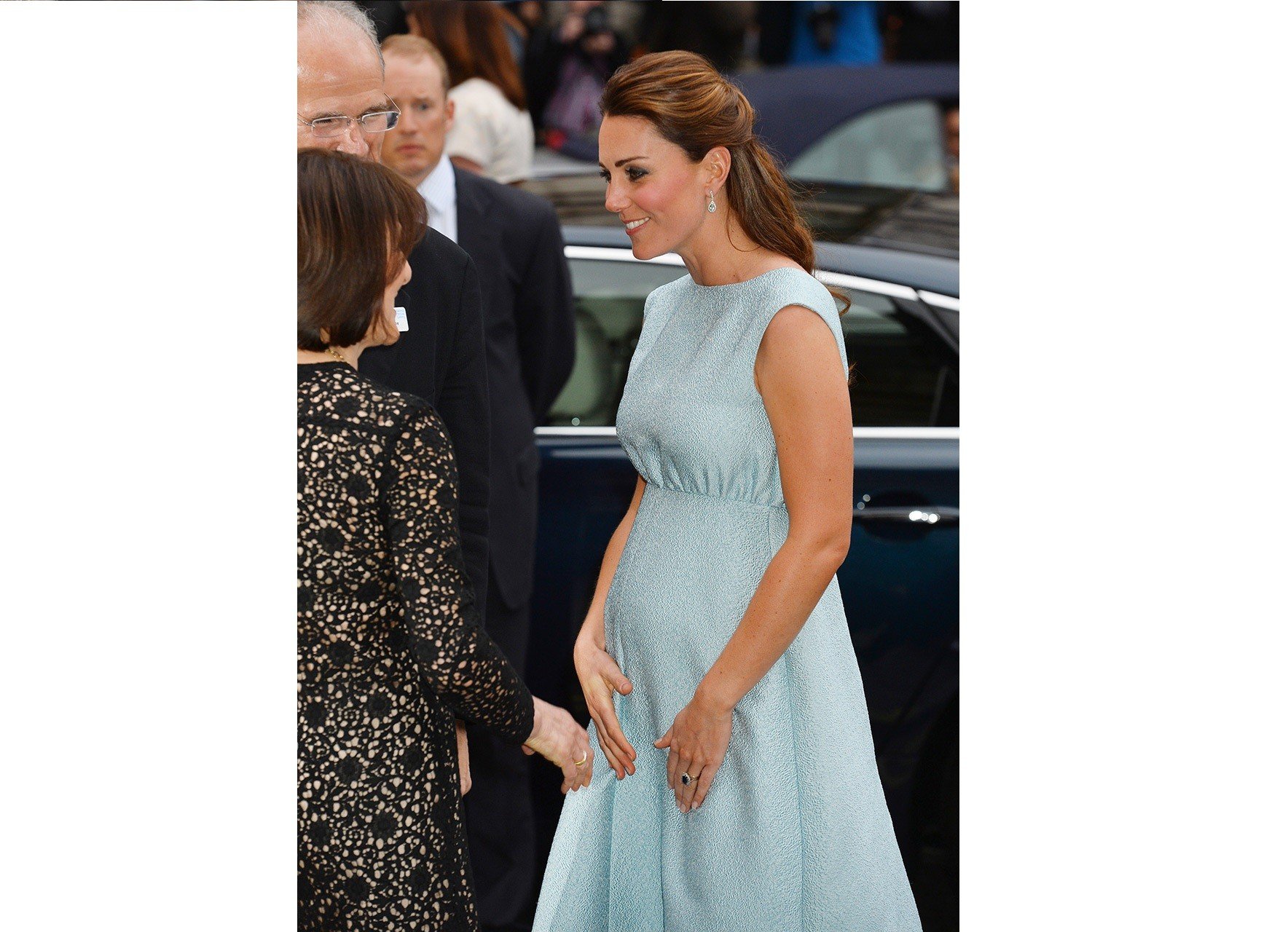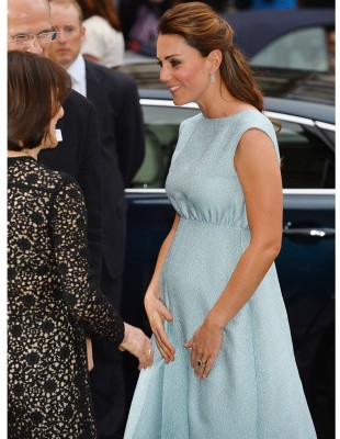 Δίνει έμφαση στο σημείο της μέσης της και θέλει πάντα να είναι τονισμένη. Το στιλ της Kate δεν άλλαξε, όταν έμεινε έγκυος. Αντίθετα οι προτιμήσεις τις παρέμειναν ίδιες. Φορώντας παλτό με ζώνη και τουαλέτες που σχημάτιζαν ψηλά τη μέση κατάφερε να παραμείνει πιστή στο ύφος της και κομψή και να εμπνεύσει τις μελλοντικές μητέρες, καθώς τα ρούχα αυτά ταιριάζουν σε όλους τους σωματότυπους.