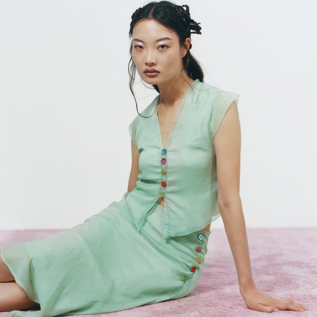Η Rachel Scott, με το label Diotima, έχει ήδη τραβήξει όλα τα βλέμματα στη Νέα Υόρκη με συλλογές γεμάτες χειροποίητα στοιχεία, διακόσμηση, λάμψεις κι έμπνευση από τη βιοποικιλότητα και τη φυσική υφή. Το show της S/S25 παρουσίασε crochet, παγιέτες, έντονα χρώματα και έννοιες εορτασμού και αντίστασης - στοιχεία που κάνουν τη μόδα της όχι μόνο οπτικά εντυπωσιακή αλλά και φορτισμένη με μηνύματα.