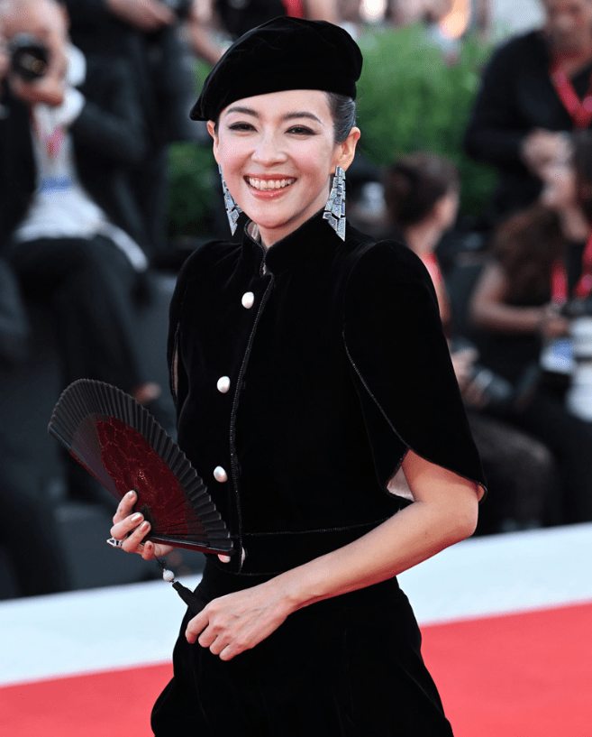 Κάνοντας μια εμφάνιση-έκπληξη στο Lido, η Zhang Ziyi ήταν όλο χαμόγελο- τα μάτια της είχαν μια απλή γραμμή eyeliner και μια απαλή ροζ απόχρωση. Για τα χείλη επέλεξε επίσης μια nude απόχρωση, ενώ τα μαλλιά της καλύφθηκαν από αυτό το υπέροχο matching με το outfit της αξεσουάρ.