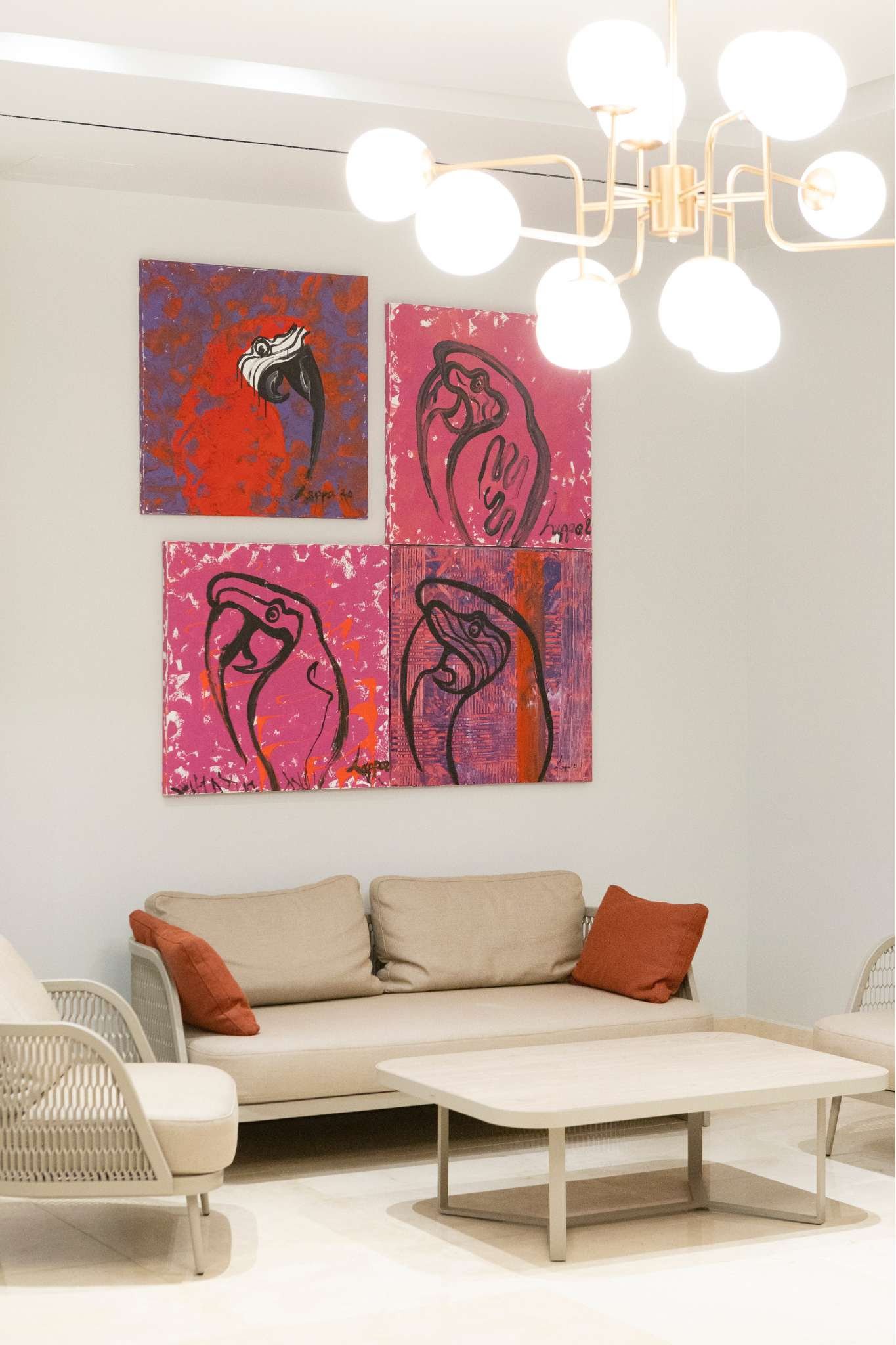 Στην Χαλκιδική, το πεντάστερο Blue Lagoon Queen αποκτά έναν ξεχωριστό χαρακτήρα, χάρη στην παρέμβαση της Christina Lappa. Η εικαστικός και interior designer σχεδίασε μια σειρά έργων που απλώνονται σε κοινόχρηστους και ιδιωτικούς χώρους του ξενοδοχείου, με στόχο η τέχνη να μην αποτελεί απλώς διακοσμητικό στοιχείο, αλλά ενεργό κομμάτι της εμπειρίας του επισκέπτη. Τα έργα της περιλαμβάνουν πολύχρωμα ψάρια, τροπικά πουλιά, θαλάσσια τοπία και ανθρώπινες μορφές, όλα αποδοσμένα με έντονα χρώματα και δυναμισμό. Το αποτέλεσμα θυμίζει περισσότερο καλοκαιρινή γκαλερί παρά ένα συνηθισμένο ξενοδοχειακό interior, ξεφεύγοντας από το προβλέψιμο και φέρνοντας την προσωπική της εικαστική ματιά στον χώρο της φιλοξενίας. Το συγκεκριμένο project, που ακούει στο όνομα "When Art & Interior Design Meet" εντάσσεται στη συνεχή δραστηριότητα της Lappa στον χώρο των art hotels, όπου η τέχνη λειτουργεί όχι μόνο ως αισθητικό στοιχείο, αλλά και ως βασικό συστατικό της ταυτότητας και της ατμόσφαιρας του χώρου.