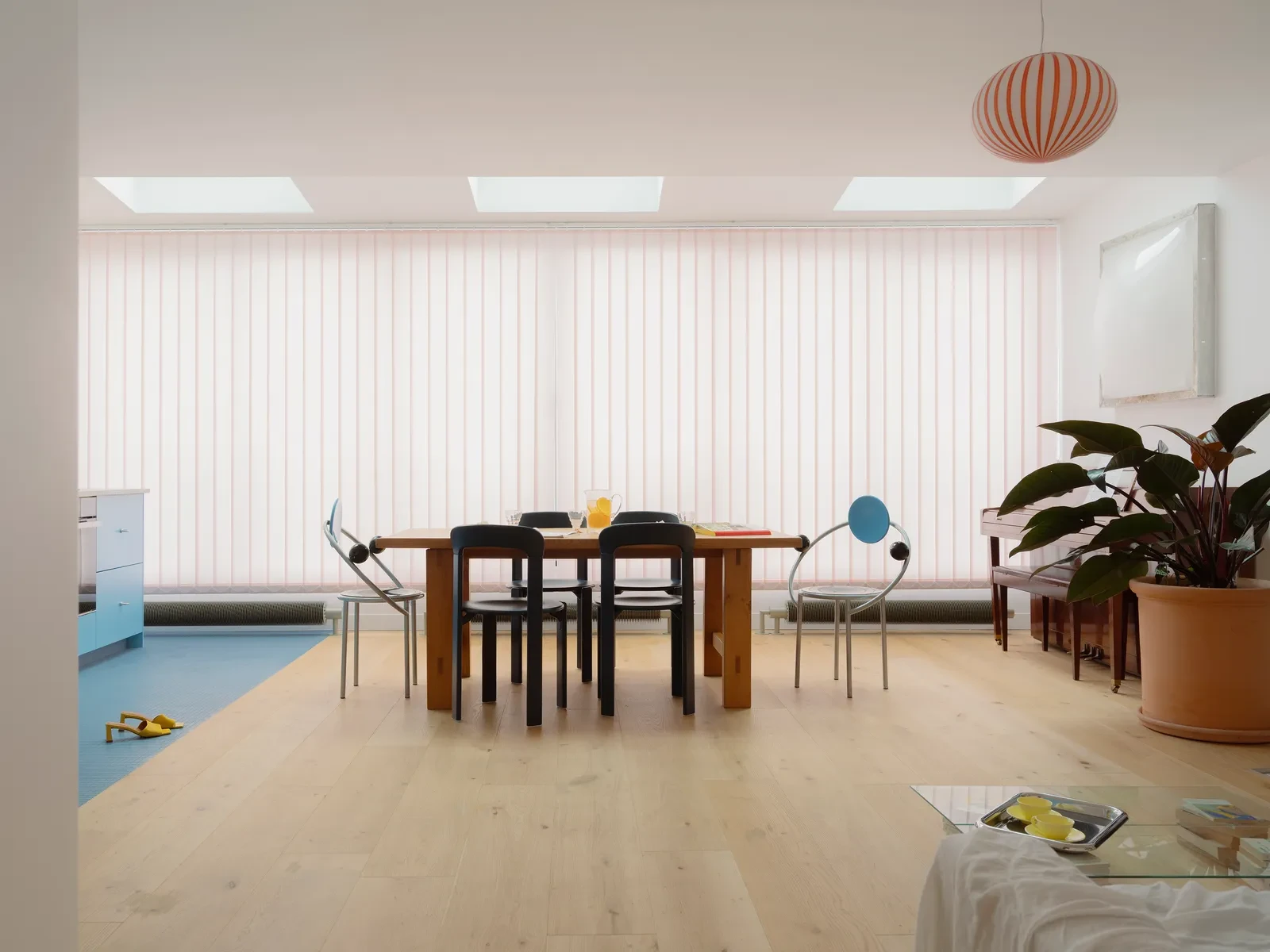Αυτό το διαμέρισμα στο Παρίσι, στον πέμπτο όροφο ενός κτιρίου του 19ου αιώνα, συνδυάζει την αίσθηση διακοπών στις πισίνες της Καλιφόρνια με την παιχνιδιάρικη αισθητική του κινήματος Memphis. Η σκηνογραφία του, εμπνευσμένη από μοντερνιστικά εσωτερικά, δίνει στο χώρο μια αίσθηση ελευθερίας και φαντασίας, όπου το φως και τα χρώματα κυριαρχούν, δημιουργώντας ατμόσφαιρα ηρεμίας και ζωντάνιας ταυτόχρονα.
