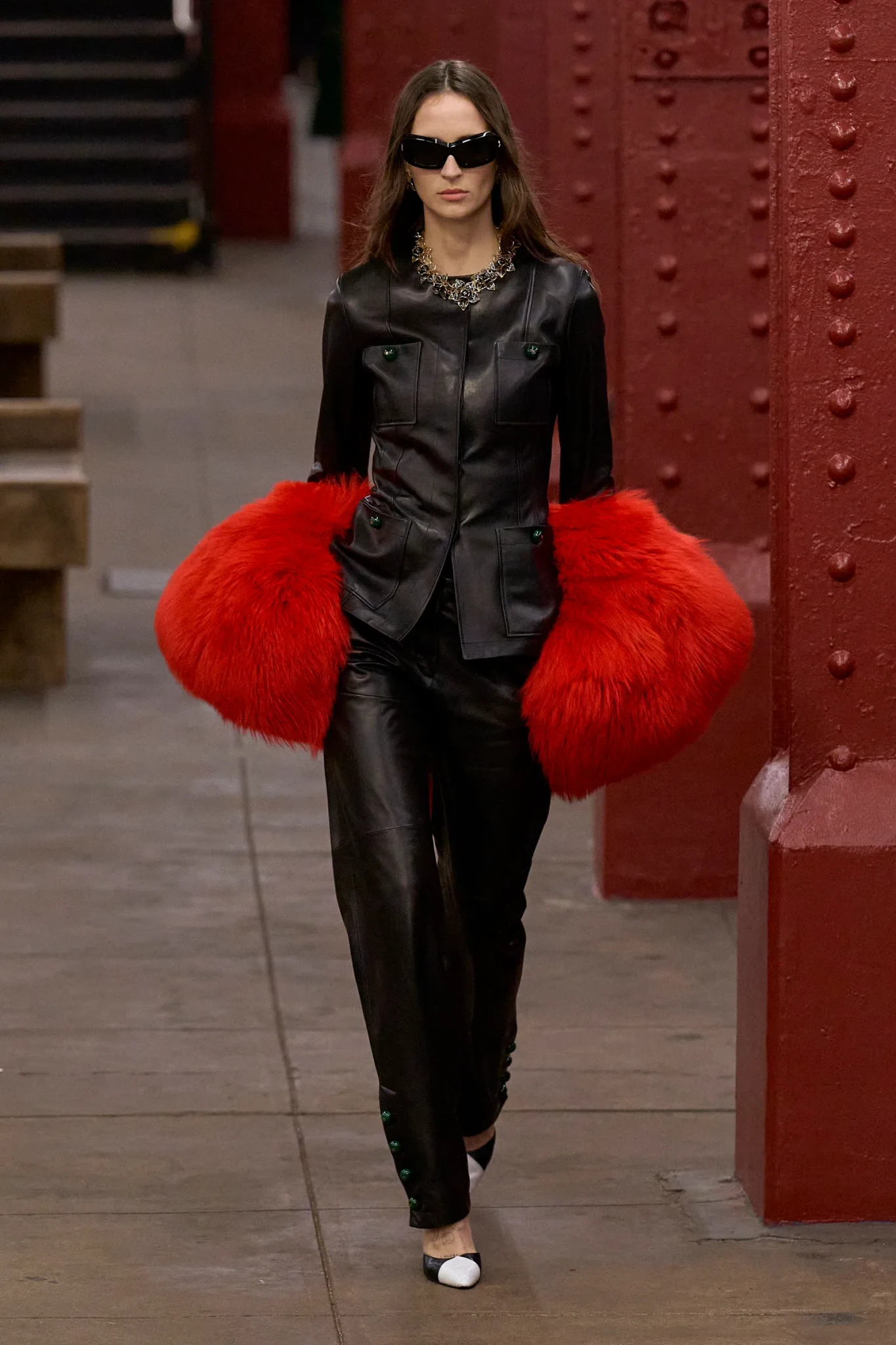 Το tweed, σήμα κατατεθέν του γαλλικού οίκου, αποκτά pop art διάσταση, με μικρά σκυλάκια να εμφανίζονται σε prints, ενώ οι σιλουέτες αναπαράγουν τον ορίζοντα του Μανχάταν μέσα από αναποδογυρισμένα μοτίβα που θυμίζουν φωτισμένες προσόψεις ουρανοξυστών. Η 2.55 μεταμορφώνεται σε μικρό αστικό «φίλο», με πατουσάκια που μεταφέρουν μια σχεδόν παιδική αθωότητα. Όλα αποδεικνύουν την ικανότητα του Blazy να τιμά τις métiers ενώ ταυτόχρονα αφηγείται νέα παραμύθια μόδας.