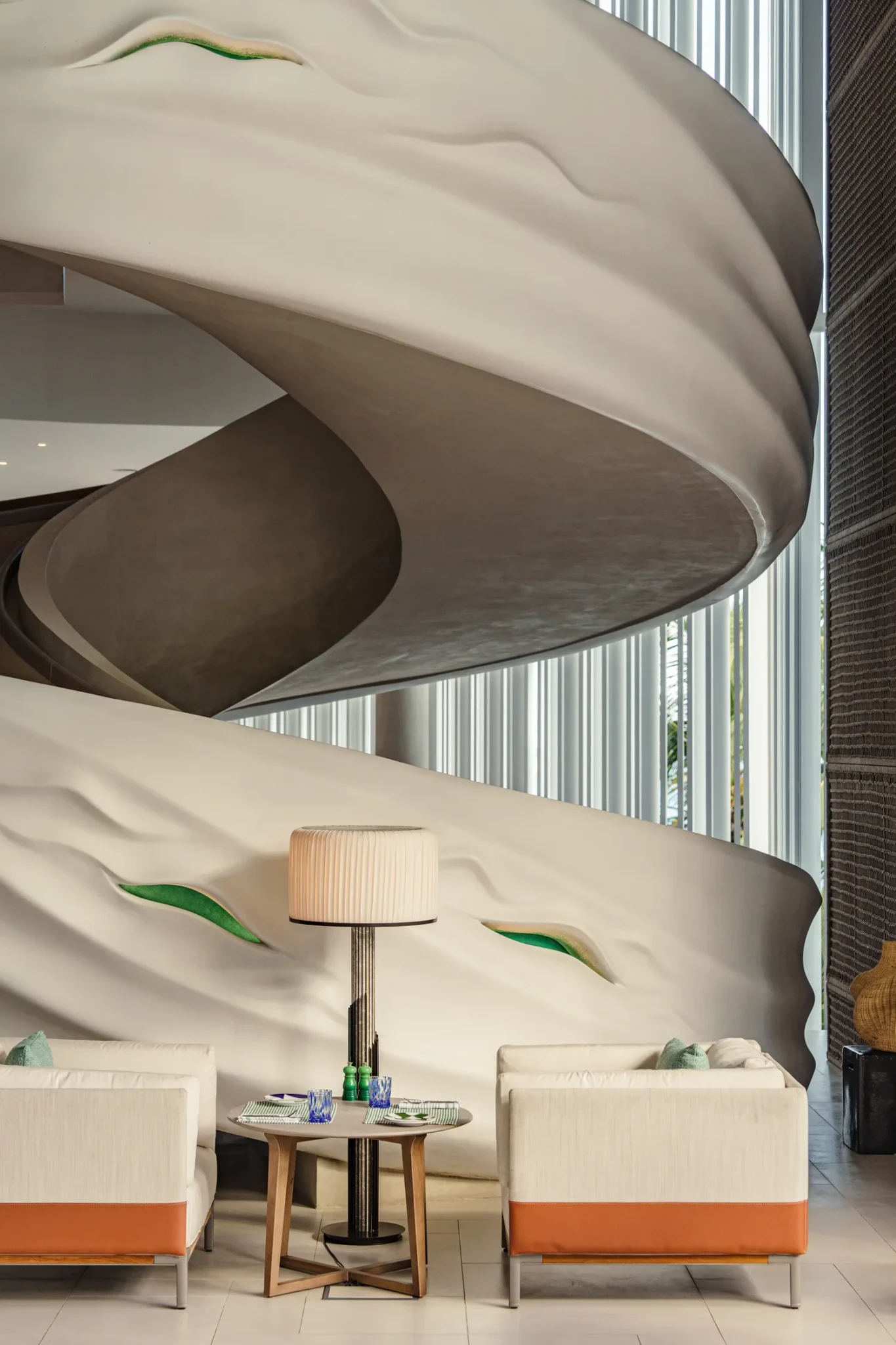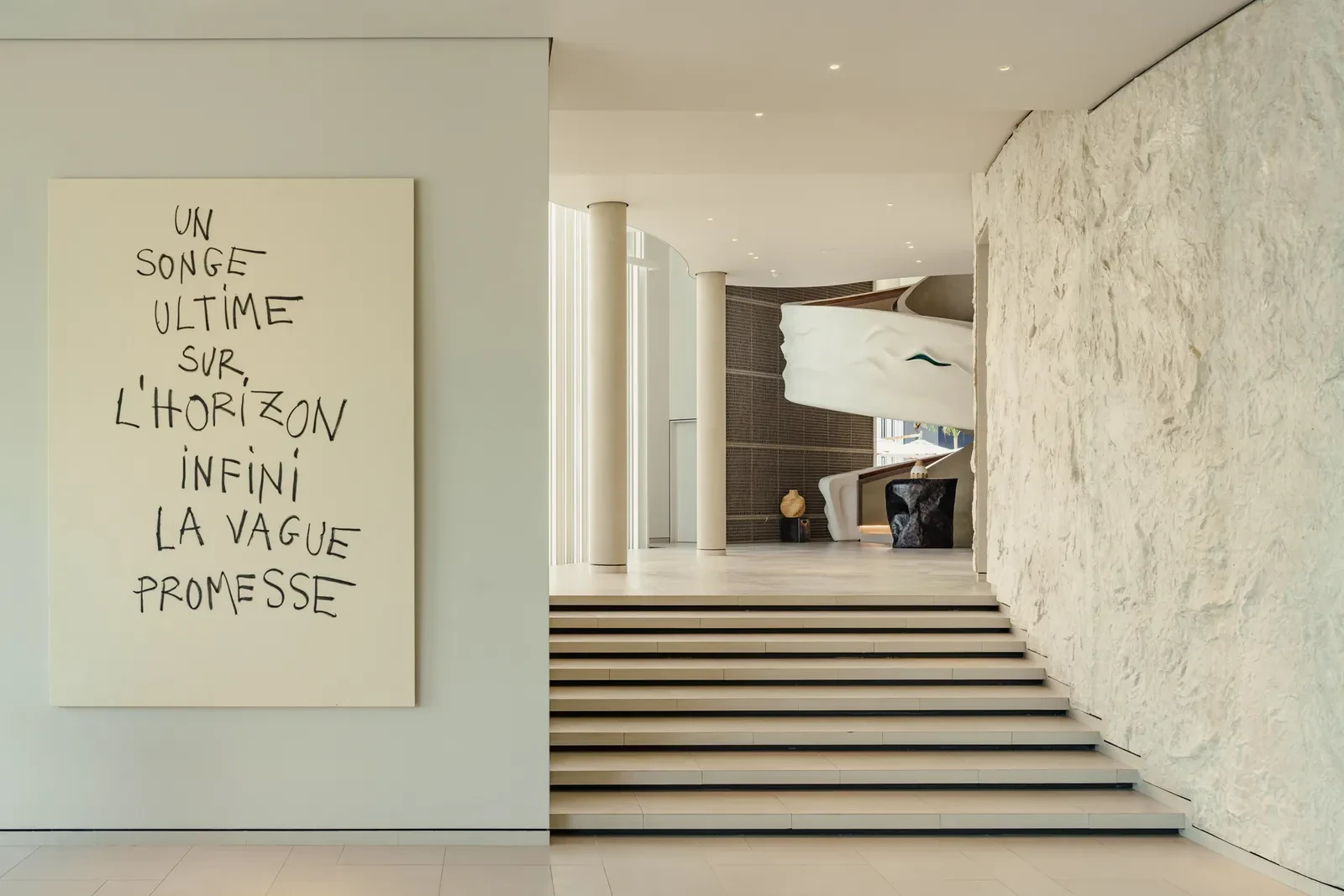 Κεντρικό στοιχείο σε κάθε βίλα είναι το έργο του καλλιτέχνη Joël Andrianomearisoa, που δημιούργησε μοναδικά υφασμάτινα “υφαντά” κομμάτια με πολύχρωμες υφές, εμπνευσμένα από την πλούσια χρωματική ποικιλία του φυσικού τοπίου. Η τέχνη είναι αναπόσπαστο κομμάτι της αρχιτεκτονικής εμπειρίας.