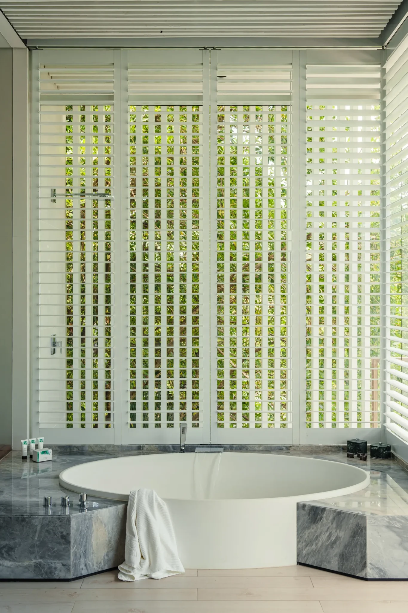 Ο σχεδιασμός του Jean‑Michel Gathy φέρει την υπογραφή της λιτής κομψότητας και της αυθεντικής σύνδεσης με το περιβάλλον. Απλώνει τον μονοχρωματικό του σχεδιασμό ώστε να αφήνει στη φύση τον πρωταγωνιστικό ρόλο: τα κτίσματα είναι διακριτικά, την ώρα που η θέα στη ζούγκλα, τα βράχια και τη θάλασσα αναδεικνύεται μέσα από καλαίσθητους διαλόγους φωτός και σκιάς. Σημειώσεις από τοπική κουλτούρα - παντζούρια, σχισμοειδείς στέγες, σχοινιά, μοτίβα καρύδας - διασκορπίζονται διακριτικά στο σκηνικό, θυμίζοντας την ιστορική σχέση του χώρου με τη Banyan Tree.