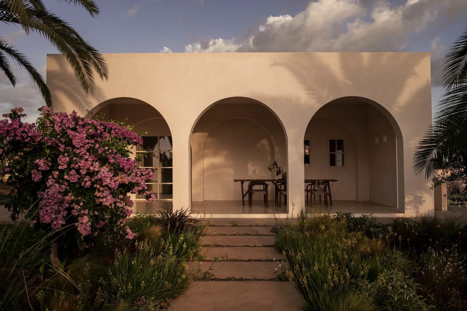 Η αρχιτεκτονική έκφραση του σπιτιού αποπνέει μεσογειακή ζεστασιά και δομική καθαρότητα. Οι τοξωτές αψίδες που κοσμούν την πρόσοψη λειτουργούν ως φυσική είσοδος, προσφέροντας έναν μεταβατικό χώρο μεταξύ εσωτερικού και εξωτερικού. Ο αρχιτεκτονικός χαρακτήρας υμνεί τα τοπικά υλικά όπως η πέτρα, οι φυσικοί σοβάδες σε αργιλώδεις αποχρώσεις και το ξύλο. Οι δομές είναι αυστηρές, λιτές, με γεωμετρική σαφήνεια που αναδεικνύει την ουσία του χώρου.