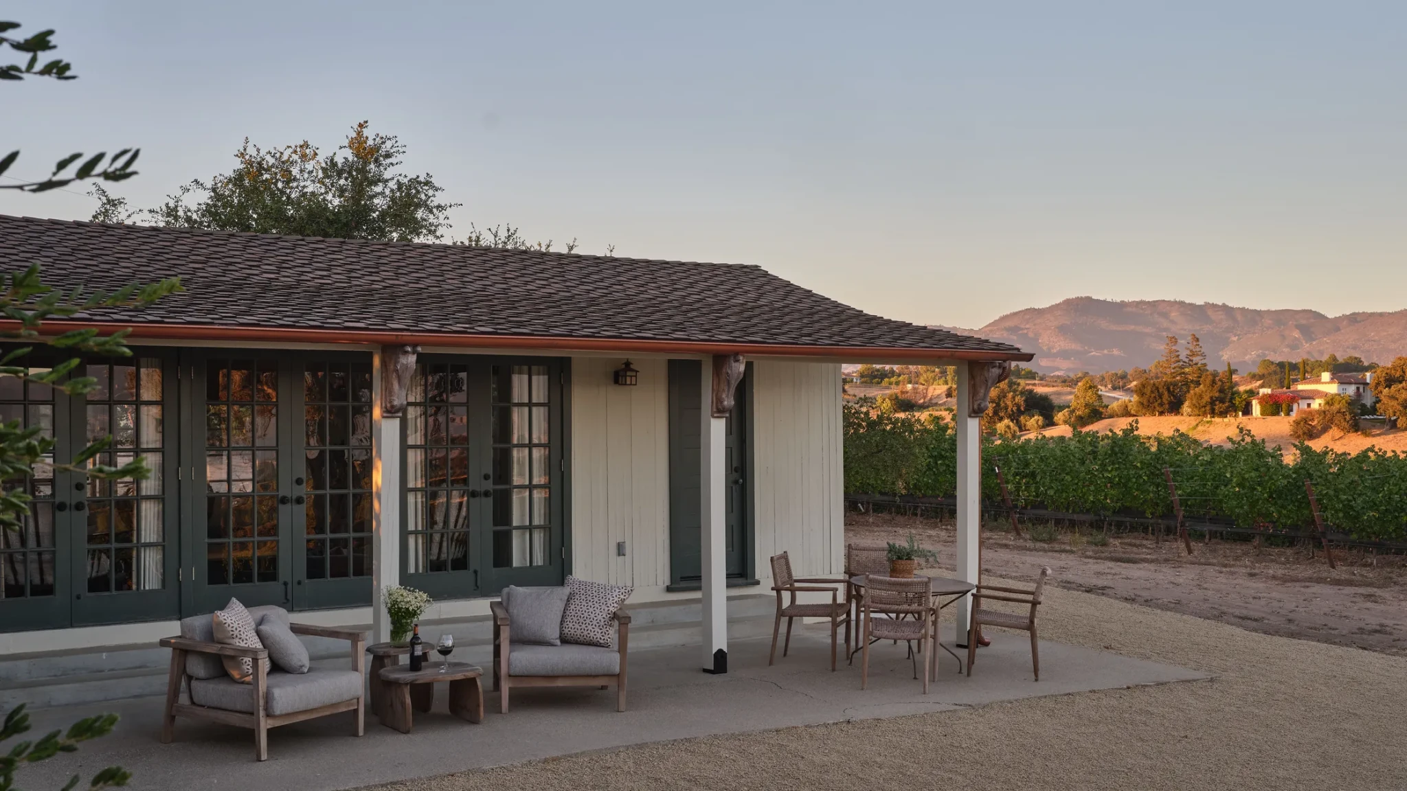 Το White Owl Ranch απλώνεται περήφανα στη Σάντα Ίνεζ της California, αγκαλιάζοντας ένα φυσικό τοπίο που συνδυάζει την ήρεμη μεγαλοπρέπεια των λόφων με τη ζωντάνια των αμπελώνων και των αιωνόβιων δέντρων βελανιδιάς. Η έκταση των 52 στρεμμάτων, ανακαινισμένη με ιδιαίτερη φροντίδα από την οινοποιό Catherine Blagden, τη σύντροφό της Mary Ricks και τη μακροχρόνια συνεργάτιδά τους Jennifer Miller, συνθέτει έναν κόσμο όπου η φύση και η ανθρώπινη δημιουργικότητα συνυπάρχουν αρμονικά. Το κυρίως σπίτι, ένα Monterey Revival του 1930 με διώροφη βεράντα, αντανακλά την ξεχωριστή αρχιτεκτονική της περιοχής, ενώ τα υπόλοιπα κτίρια φέρουν ονόματα που παραπέμπουν στα πουλιά που επισκέπτονται το ranch, δημιουργώντας έναν δεσμό μεταξύ του χώρου και της άγριας ζωής που τον περιβάλλει.