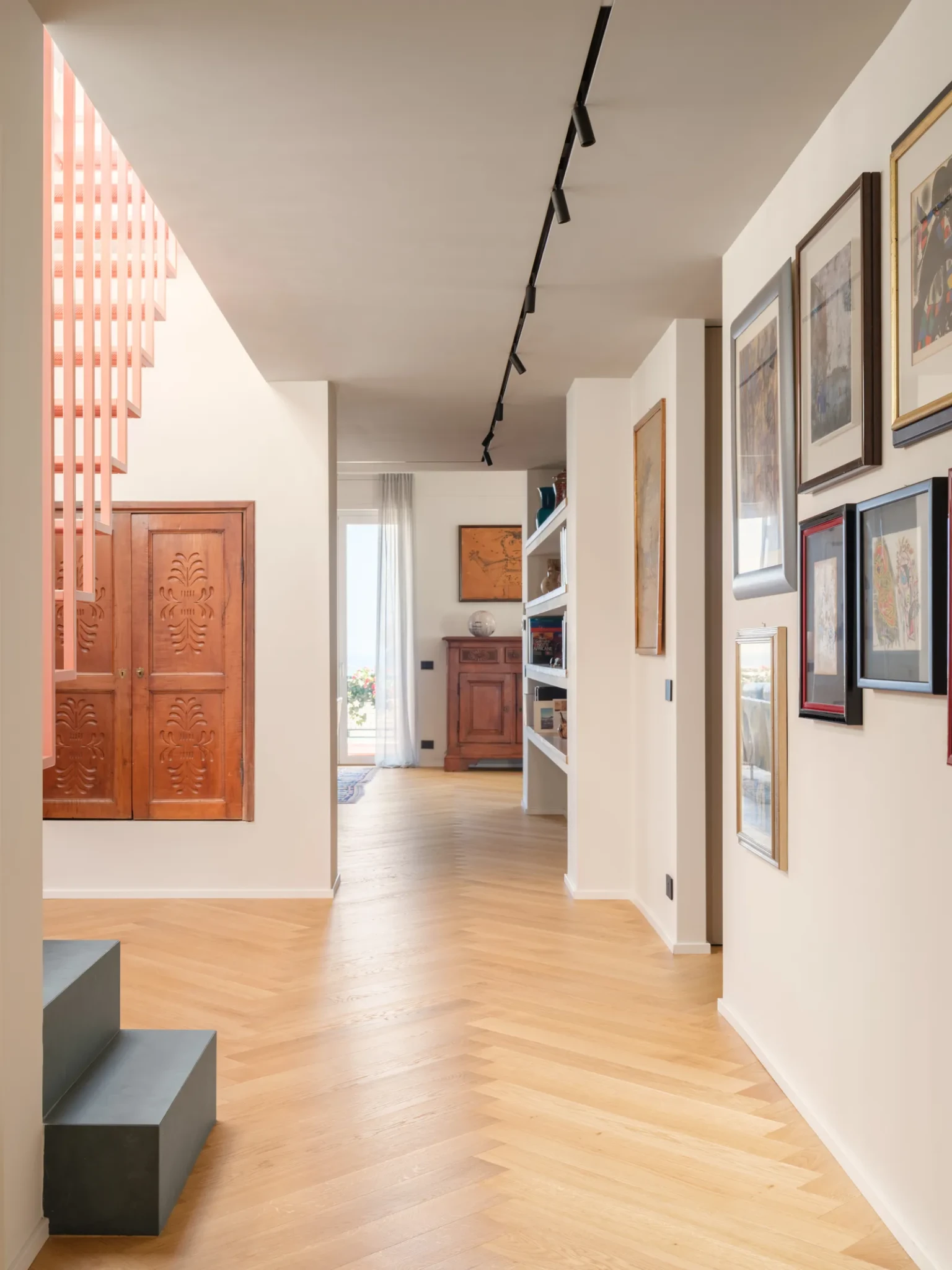 Στην ακτογραμμή του Nervi, με φόντο τον κόλπο της Γένοβας, αυτό το ρετιρέ αποτυπώνει μια διαφορετική προσέγγιση στο σύγχρονο coastal living. Αντί να αντιμετωπίζεται η θέα ως απλό πλεονέκτημα, μετατρέπεται σε βασική αρχιτεκτονική αρχή που καθορίζει τη δομή και τη λειτουργία του σπιτιού. Η πιο καθοριστική παρέμβαση ήταν η πλήρης αναδιάταξη της κάτοψης, με τους «κοινωνικούς» χώρους να μεταφέρονται προς τη θάλασσα, επιτρέποντας στο φως να εισχωρεί βαθιά στο εσωτερικό και να μεταμορφώνει συνεχώς την ατμόσφαιρα. Το σπίτι δεν παραμένει στατικό, αλλά αλλάζει μέσα στη διάρκεια της ημέρας, ακολουθώντας τον ρυθμό του φυσικού τοπίου.