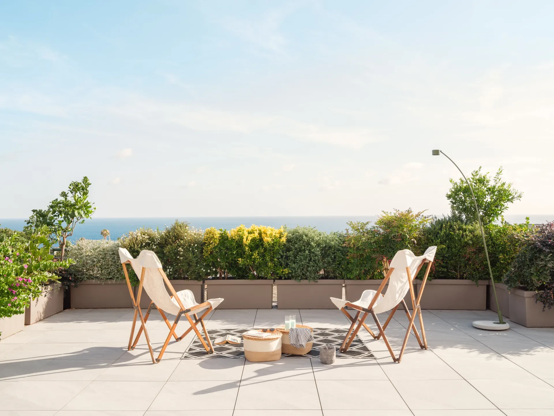 Η μεγάλη βεράντα αποτελεί την καρδιά της κατοικίας. Εξοπλισμένη με καθίσματα εξωτερικού χώρου και φωτισμό που επιτρέπει τη χρήση της όλες τις ώρες, λειτουργεί ως ένα δεύτερο καθιστικό με θέα τη θάλασσα. Εδώ, η αρχιτεκτονική υποχωρεί και αφήνει το τοπίο να πρωταγωνιστήσει. Ο χώρος μετατρέπεται σε σημείο συνάντησης, χαλάρωσης και καθημερινής απόδρασης, αποδεικνύοντας ότι η πραγματική πολυτέλεια βρίσκεται στην εμπειρία.