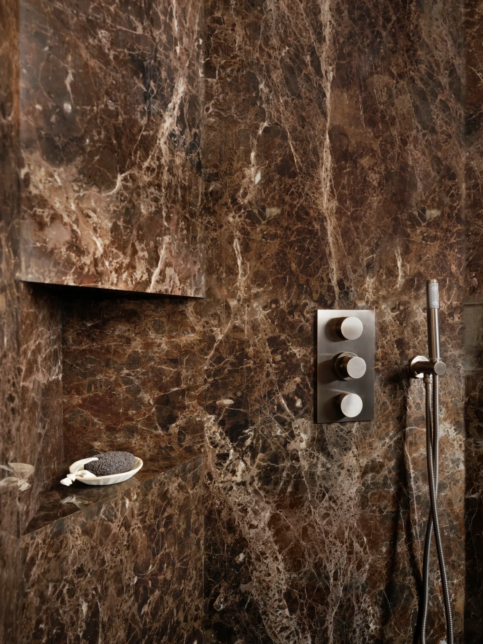 Η χρωματική παλέτα παραμένει διακριτική και ισορροπημένη, με απαλές αποχρώσεις του γκρι, του μπεζ και γήινους τόνους που αναδεικνύουν τα υλικά και τις λεπτομέρειες. Ο φωτισμός, προσεκτικά μελετημένος, αγκαλιάζει τις επιφάνειες και δημιουργεί μια ήρεμη, σχεδόν ποιητική ατμόσφαιρα, όπου κάθε στοιχείο αποκτά τη δική του σημασία μέσα στο σύνολο, χωρίς υπερβολές.