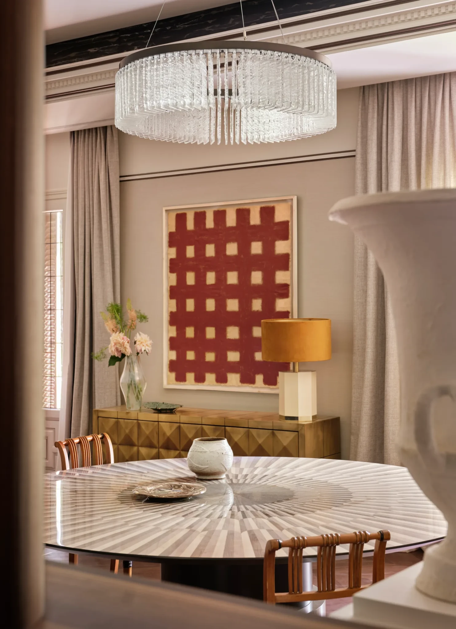 Στην καρδιά της Μαδρίτης, ένα εντυπωσιακό ρετιρέ με έντονη ιστορική ταυτότητα μεταμορφώνεται σε έναν χώρο όπου η αίγλη του παρελθόντος συνυπάρχει αρμονικά με τη σύγχρονη πολυτέλεια. Κάποτε κατοικία ενός θεατρικού συγγραφέα, το διαμέρισμα επαναπροσδιορίζεται μέσα από μια αισθητική που ισορροπεί ανάμεσα στο νεοκλασικό ύφος και τη μοντέρνα κομψότητα. Χρυσαφένιες επιφάνειες διατρέχουν τα έπιπλα, γλυπτά στοιχεία στέκονται επιβλητικά στον χώρο, ενώ υφάσματα σε βαθιές αποχρώσεις κερασιού ζωντανεύουν τα ήρεμα, φωτεινά δωμάτια.