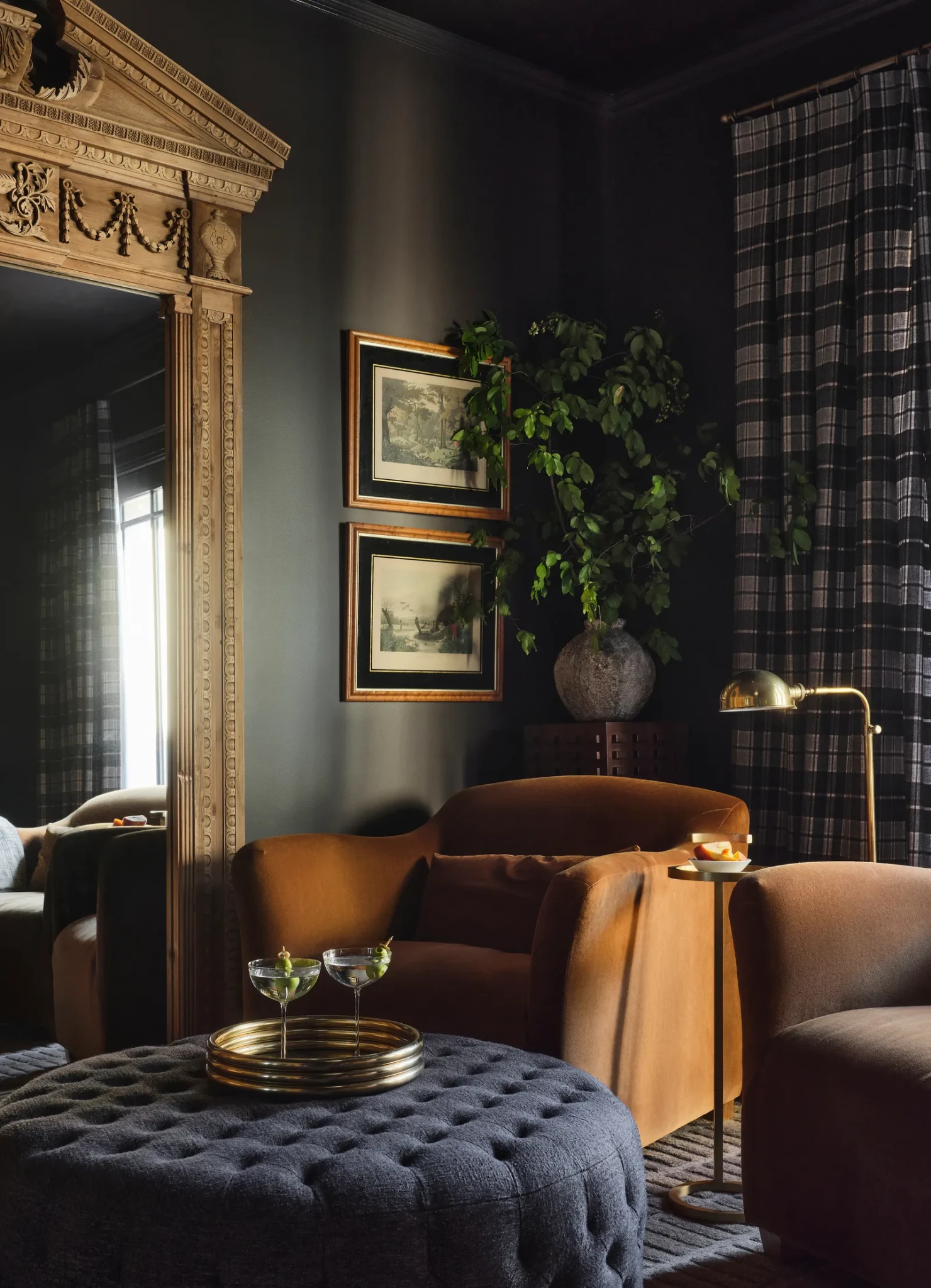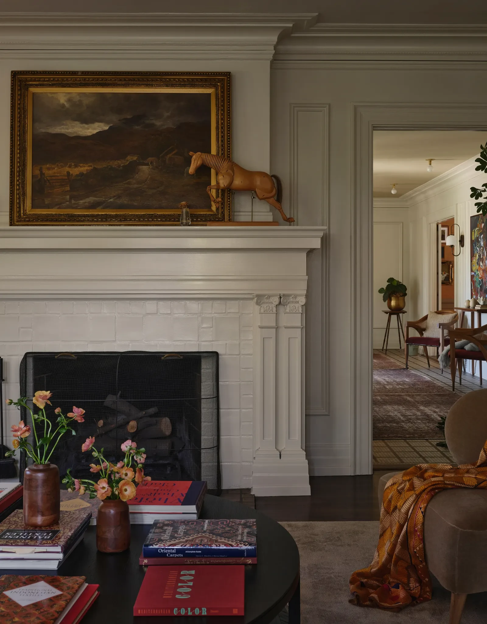 Στο σαλόνι, η ατμόσφαιρα είναι ήρεμη και γεμάτη φως. Το παλιό πιάνο στέκει δίπλα στο τζάκι, ενώ έργα σύγχρονης τέχνης χαρίζουν δυναμισμό και βάθος. Οι γήινες αποχρώσεις συνδυάζονται με μεταλλικές λεπτομέρειες, δημιουργώντας ένα περιβάλλον που είναι ταυτόχρονα ρεαλιστικό και ονειρικό. Η αίσθηση του οικείου κυριαρχεί· κάθε έπιπλο φαίνεται να έχει τη δική του ιστορία, κάθε αντικείμενο τη δική του σημασία.