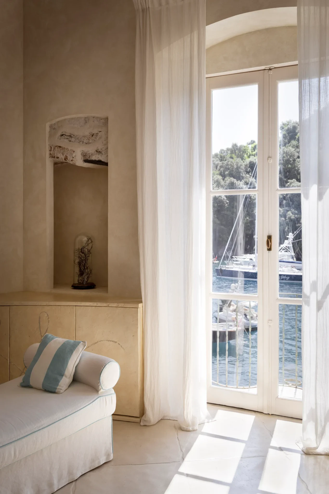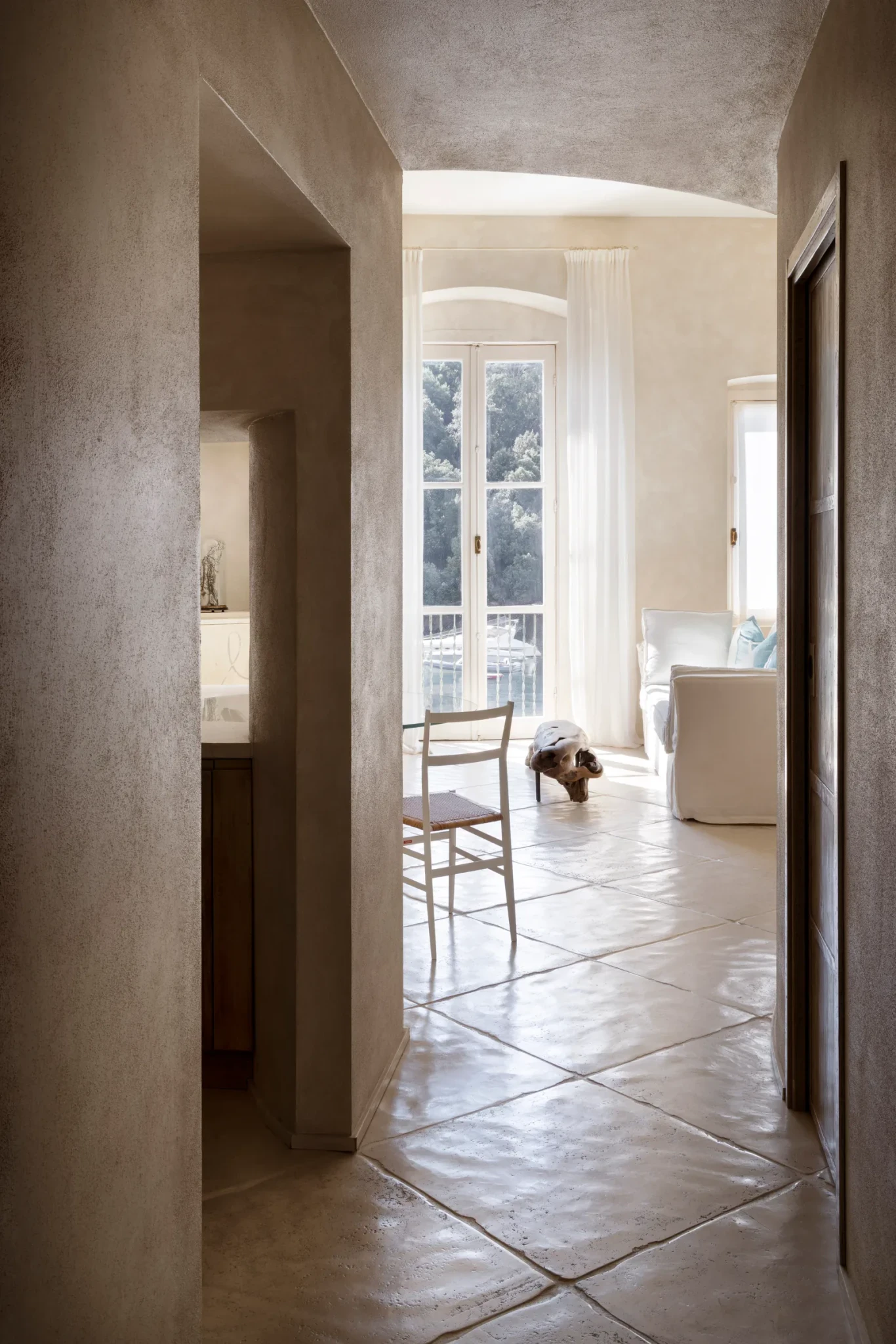 Στη μαγευτικής Πιατσέτα του Πορτοφίνο, εκεί όπου η μεσογειακή γοητεία συναντά την αίσθηση της διαχρονικής πολυτέλειας, βρίσκεται ένα διαμέρισμα που ξεχωρίζει για την οργανική του σχεδίαση. Ο αρχιτέκτονας Marco Lecchi δημιούργησε έναν χώρο εμπνευσμένο από τις καμπύλες και τις υφές ενός κοχυλιού, προσφέροντας ένα περιβάλλον όπου η φύση και η αρχιτεκτονική συγχωνεύονται σε ένα αρμονικό σύνολο. Η επιλογή των υλικών και η διαρρύθμιση αναδεικνύουν την αίσθηση της γαλήνης και της θαλασσινής αύρας, δίνοντας μια νέα διάσταση στη μεσογειακή κατοικία.