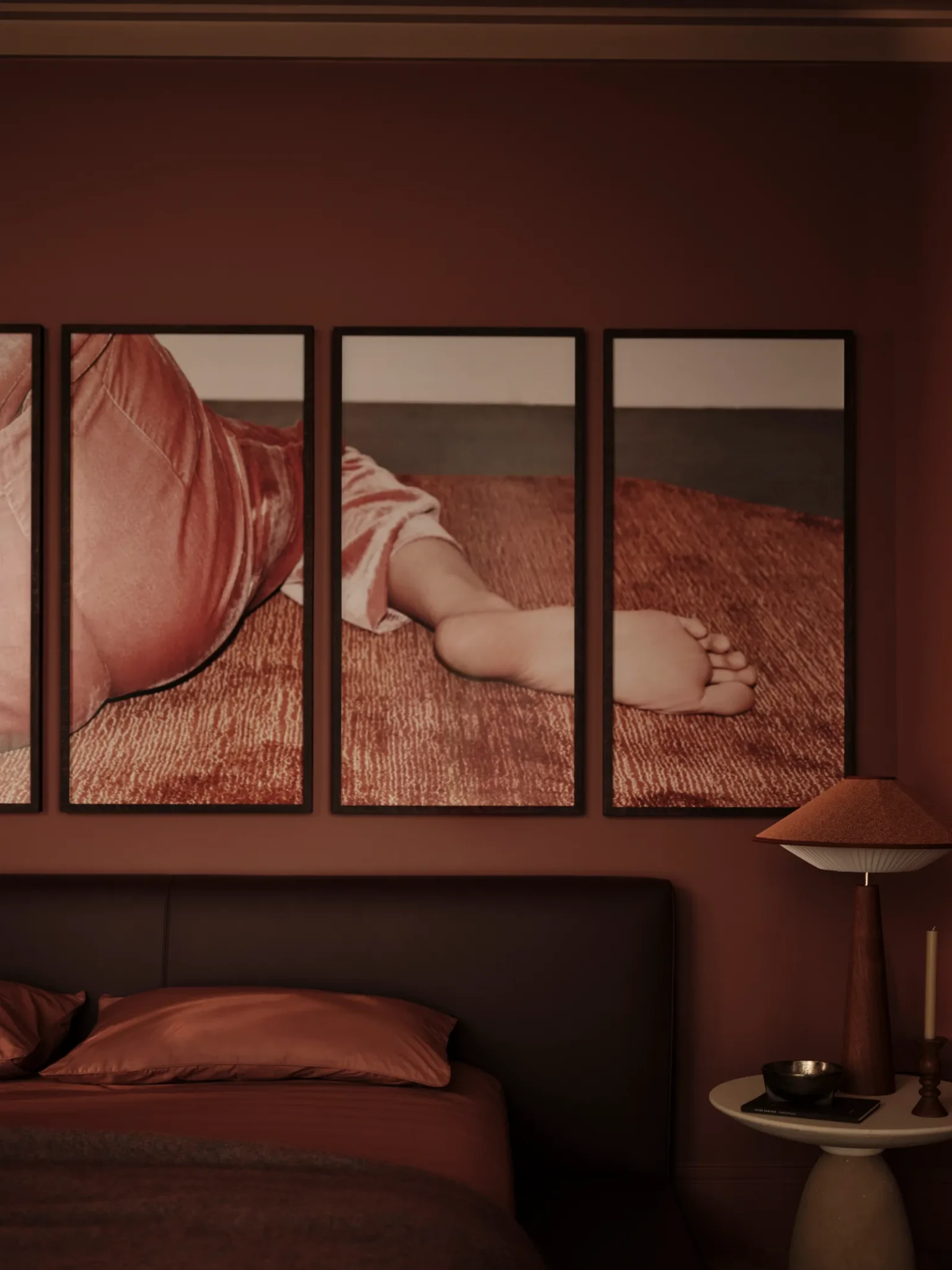 Η κύρια κρεβατοκάμαρα κρατά την ίδια θερμή παλέτα αλλά με πιο πλούσιους τόνους, ώστε να προσφέρει μια αίσθηση ζεστασιάς και οικειότητας. Η Lafferty ήθελε να δημιουργήσει έναν χώρο που δεν είναι απλώς όμορφος, αλλά αισθησιακός, απαλός στην αφή και πραγματικά “ζωντανός” όταν ζεις μέσα του.