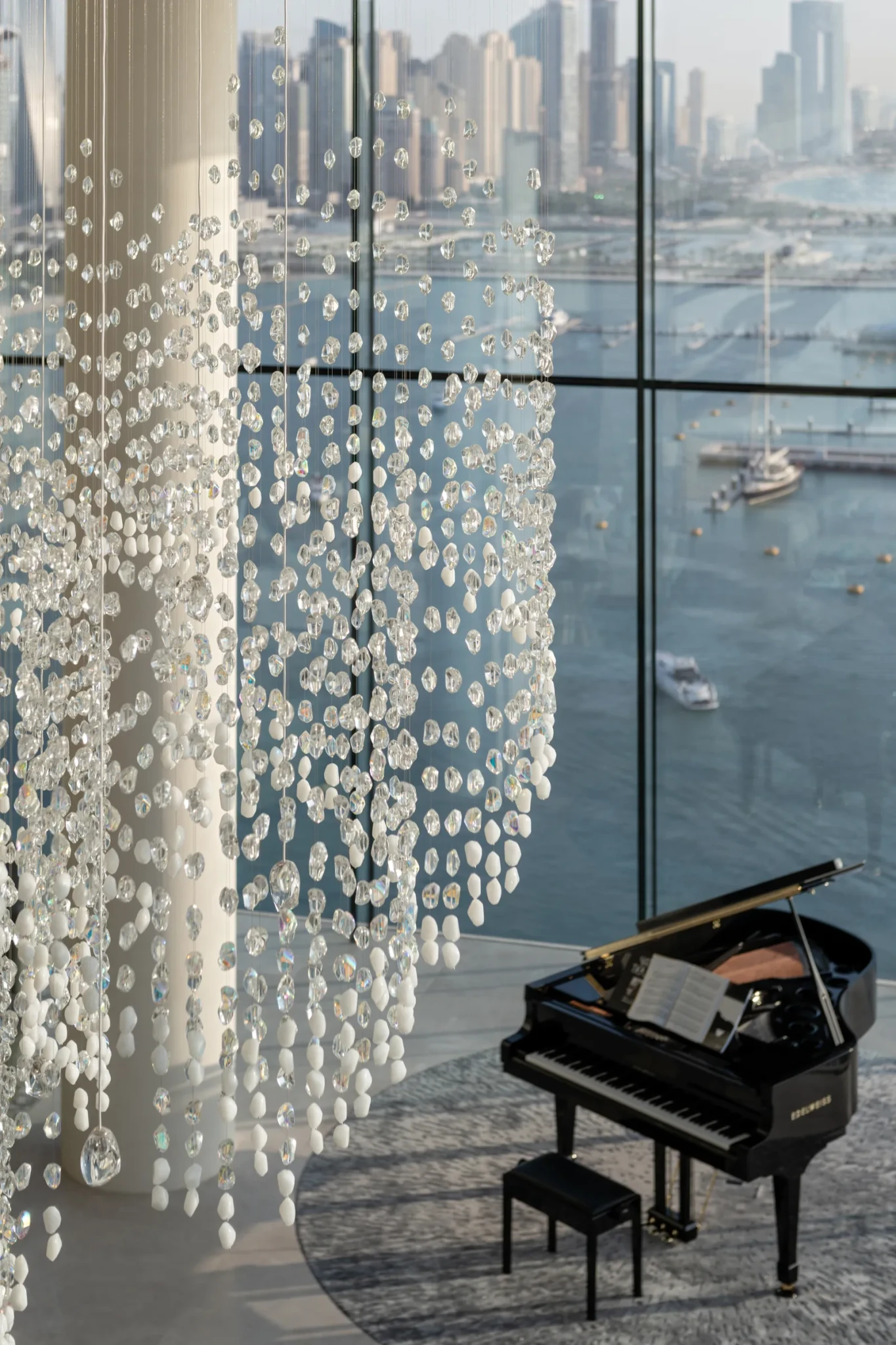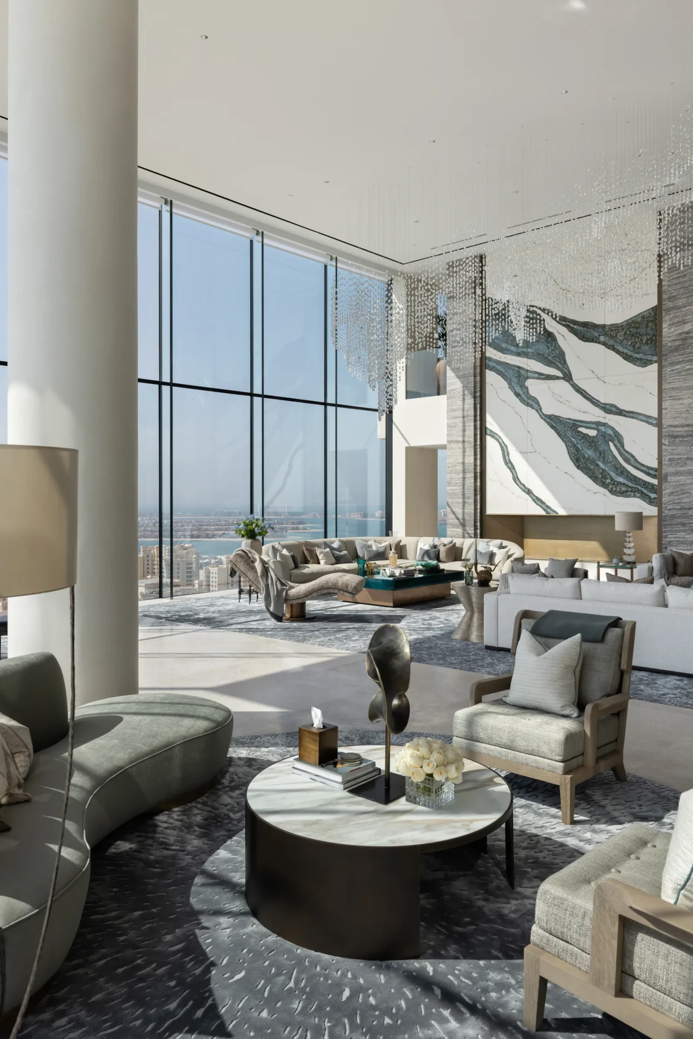 Στην Palm Jumeirah, ένα διώροφο ρετιρέ 2.200 τετραγωνικά μέτρα, αποκτά μια νέα ζωή. Από ένα άδειο, άκαμπτο κέλυφος, μεταμορφώνεται σε έναν ζεστό και φιλόξενο χώρο που παντρεύει τη μεγαλοπρέπεια με την καθημερινή άνεση. Η Charu Gandhi από την Elicyon κατάφερε να φέρει στην πραγματικότητα την ονειρική φιλοσοφία των ιδιοκτητών, δημιουργώντας έναν χώρο που συνδυάζει πολυτέλεια, λειτουργικότητα και οικογενειακή ζεστασιά. Η διαδρομή από την αρχική φάση έως την ολοκλήρωση κράτησε δύομιση χρόνια, με προσεκτικό σχεδιασμό, αρχιτεκτονική επίβλεψη, εξατομικευμένες ξυλουργικές κατασκευές και επιμελημένη επιλογή έργων τέχνης και διακοσμητικών αντικειμένων.