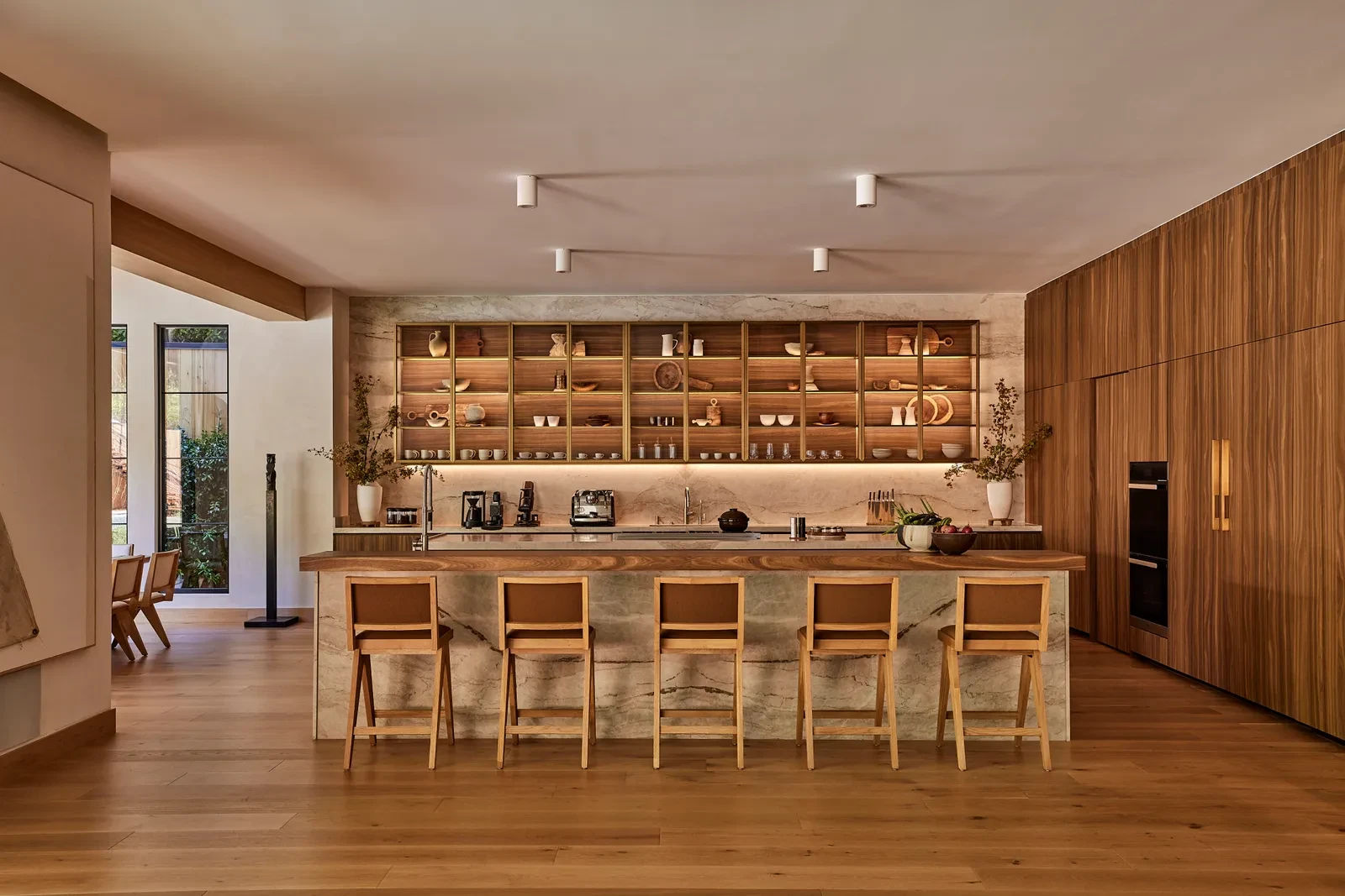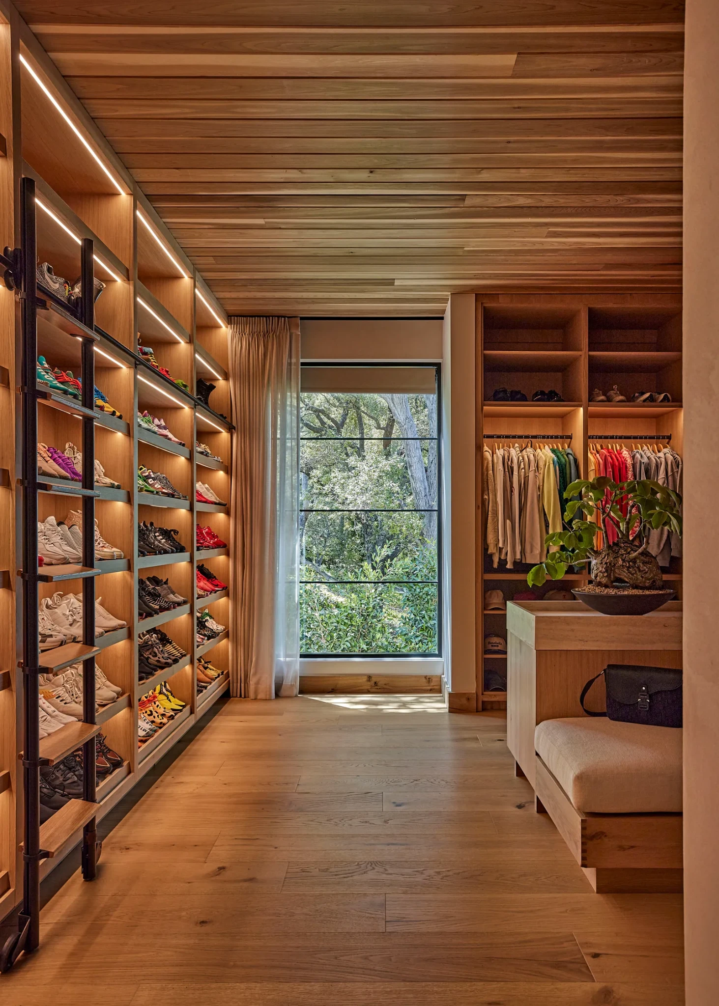 Το εσωτερικό ακολουθεί μια zen Japandi αισθητική, με τον σχεδιαστή και developer Jae Omar να επιμελείται έναν χώρο όπου η μινιμαλιστική φιλοσοφία συναντά τη θερμότητα του φυσικού ξύλου. Το λευκό δρύινο στοιχείο κυριαρχεί παντού, από τα πατώματα έως τις επενδύσεις και τα έπιπλα, δημιουργώντας οπτική συνοχή και καθαρότητα. Ο Zedd, γνωστός για την προσοχή του στη λεπτομέρεια, συνέδεσε άμεσα τη μουσική του προσέγγιση με την αρχιτεκτονική διαδικασία, αναγνωρίζοντας στον Omar έναν δημιουργό με την ίδια τελειομανία. Κάθε επιλογή, κάθε γωνία, κάθε επιφάνεια ελέγχθηκε σχολαστικά, μέχρι να επιτευχθεί η τέλεια ισορροπία ανάμεσα στη λειτουργικότητα και την αισθητική αρμονία.