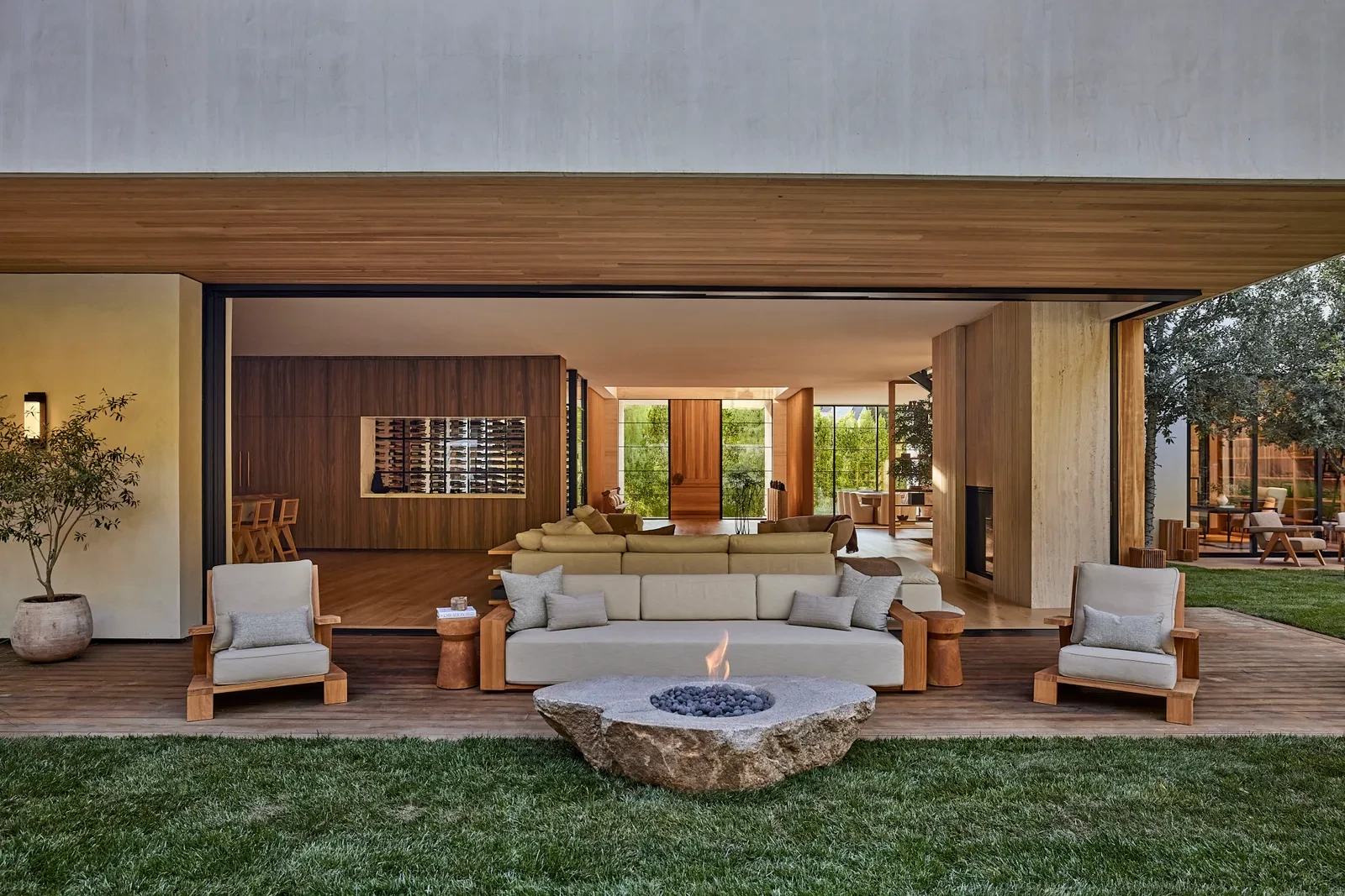 Στη Καλιφόρνια, ο διεθνώς αναγνωρισμένος μουσικός και DJ Zedd (Anton Zaslavski) δημιούργησε ένα εντυπωσιακό καταφύγιο 1.600 τετραγωνικών μέτρων, όπου κάθε γραμμή, επιφάνεια και υφή υπακούει στην αρχή της συμμετρίας. Η επιθυμία του για γεωμετρική αρμονία καθοδήγησε κάθε στάδιο του σχεδιασμού, μετατρέποντας την κατοικία σε μία σύγχρονη μελέτη ισορροπίας. Η είσοδος, με τη δυτική κόκκινη κέδρινη πόρτα, πλαισιωμένη από υαλοστάσια δαπέδου-οροφής και ταβερτίνο, λειτουργεί ως προοίμιο της φιλοσοφίας που διατρέχει όλο το εσωτερικό: καθαρές γραμμές, φυσικά υλικά και μια αίσθηση ήρεμης συμμετρίας που προσφέρει ψυχική γαλήνη.