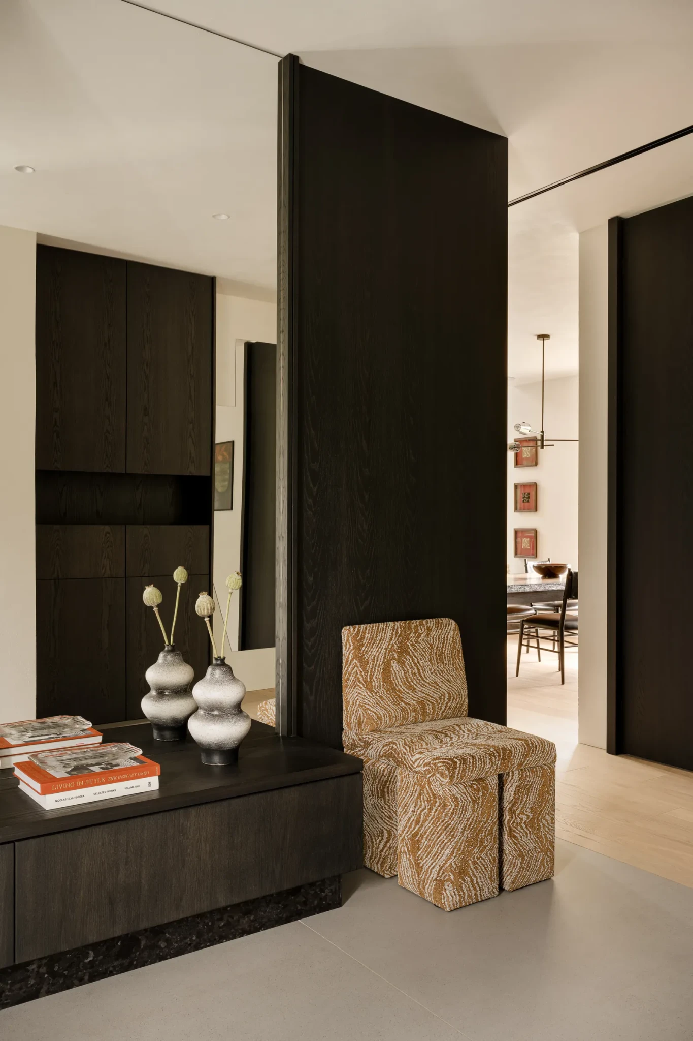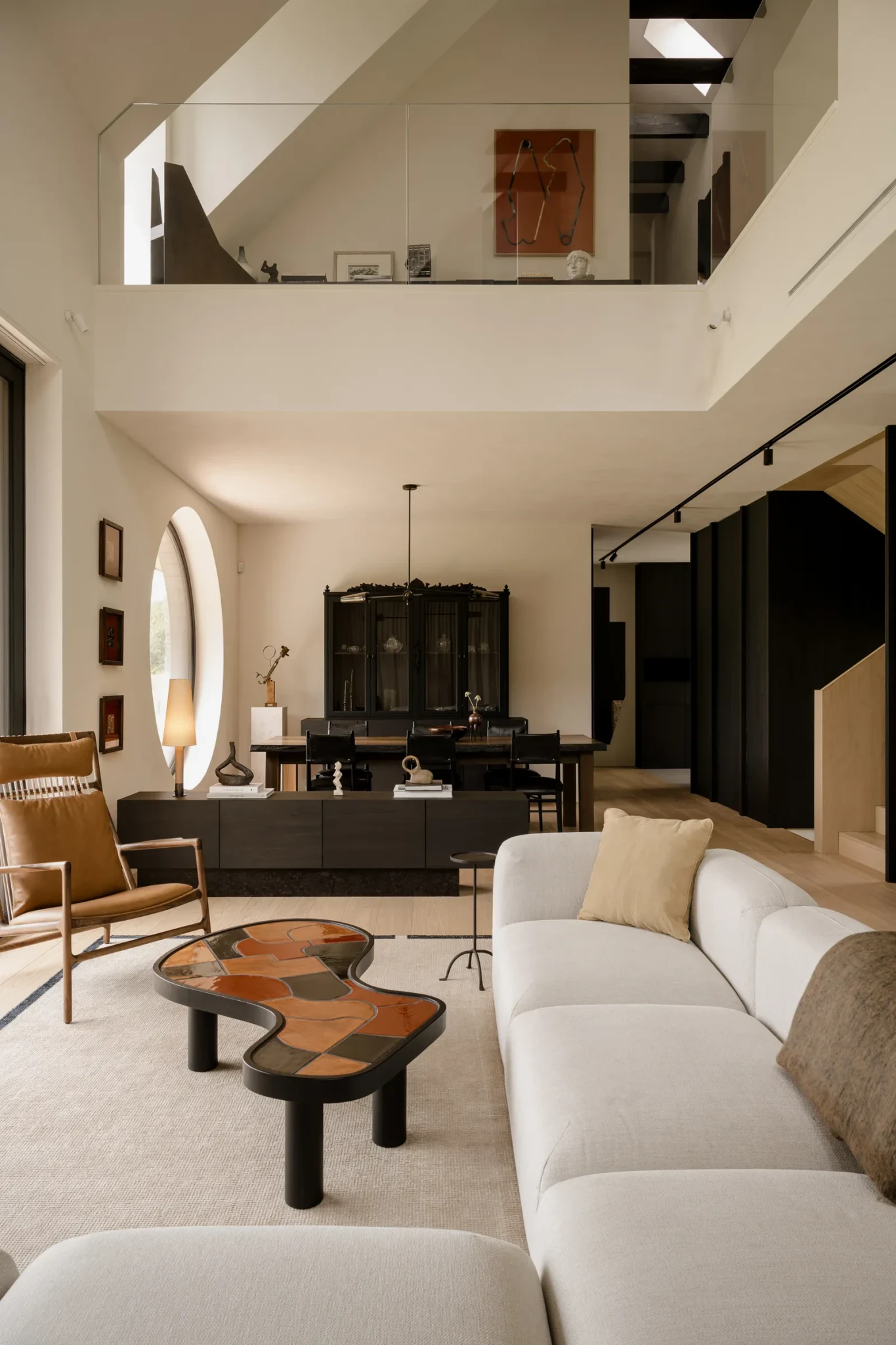 Παράλληλα, διάσημα κομμάτια διεθνούς design δίνουν τον δικό τους τόνο: η πολυθρόνα Togo του Michel Ducaroy, οι καρέκλες του Matteo Cibic, αλλά και δημιουργίες Πολωνών σχεδιαστών, όπως καρέκλες εργασίας με έντονο βιομηχανικό χαρακτήρα. Ο διάλογος ανάμεσα στο χειροποίητο και στο μοντέρνο, στο διεθνές και στο τοπικό, αποκαλύπτει την πολυπλοκότητα αλλά και την ισορροπία του χώρου.