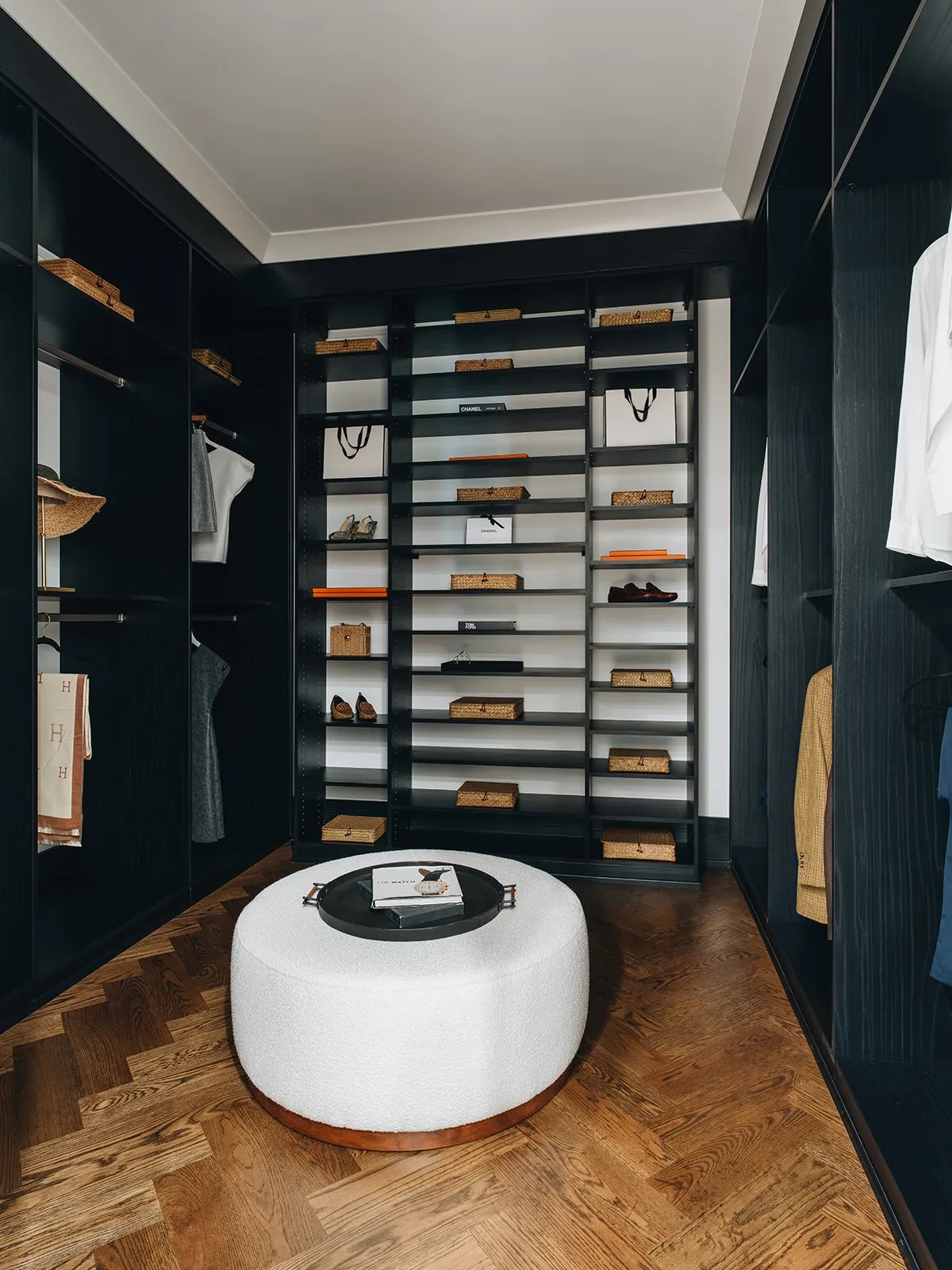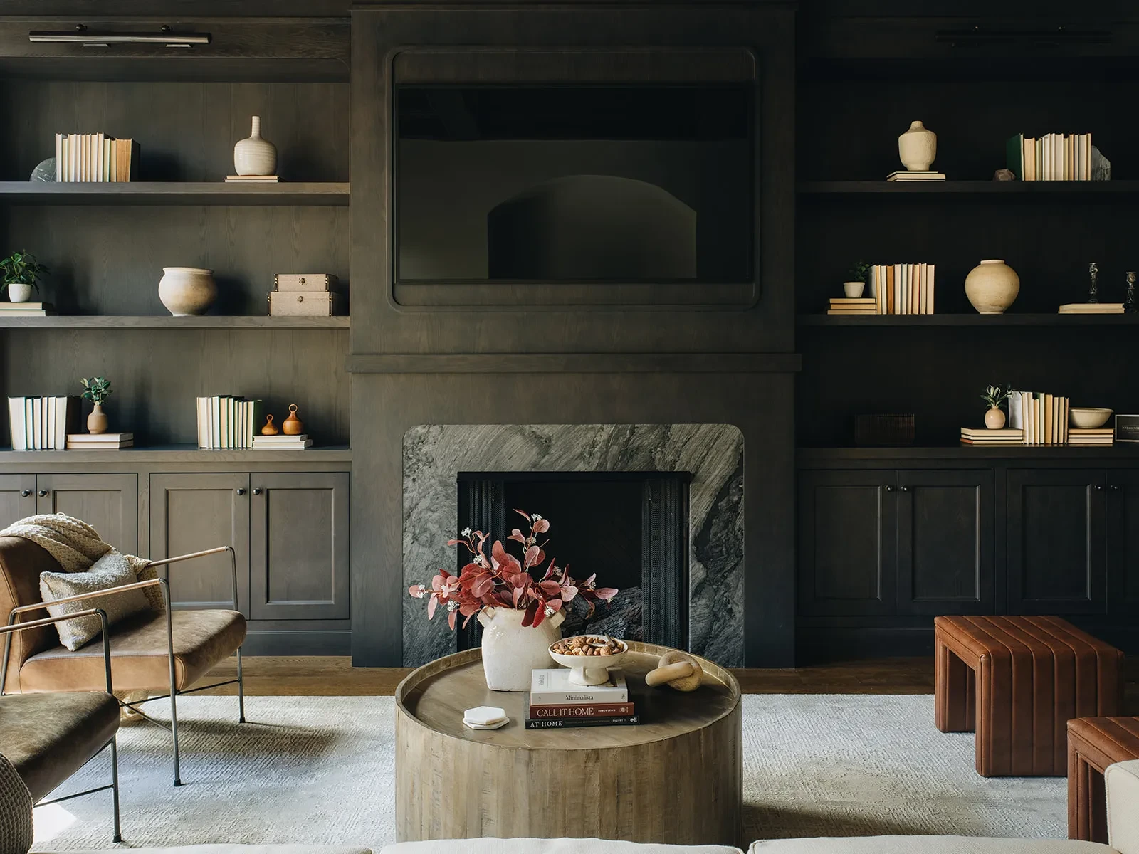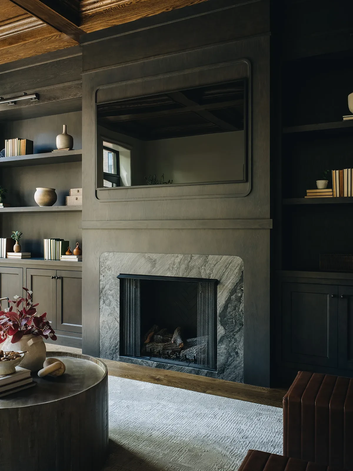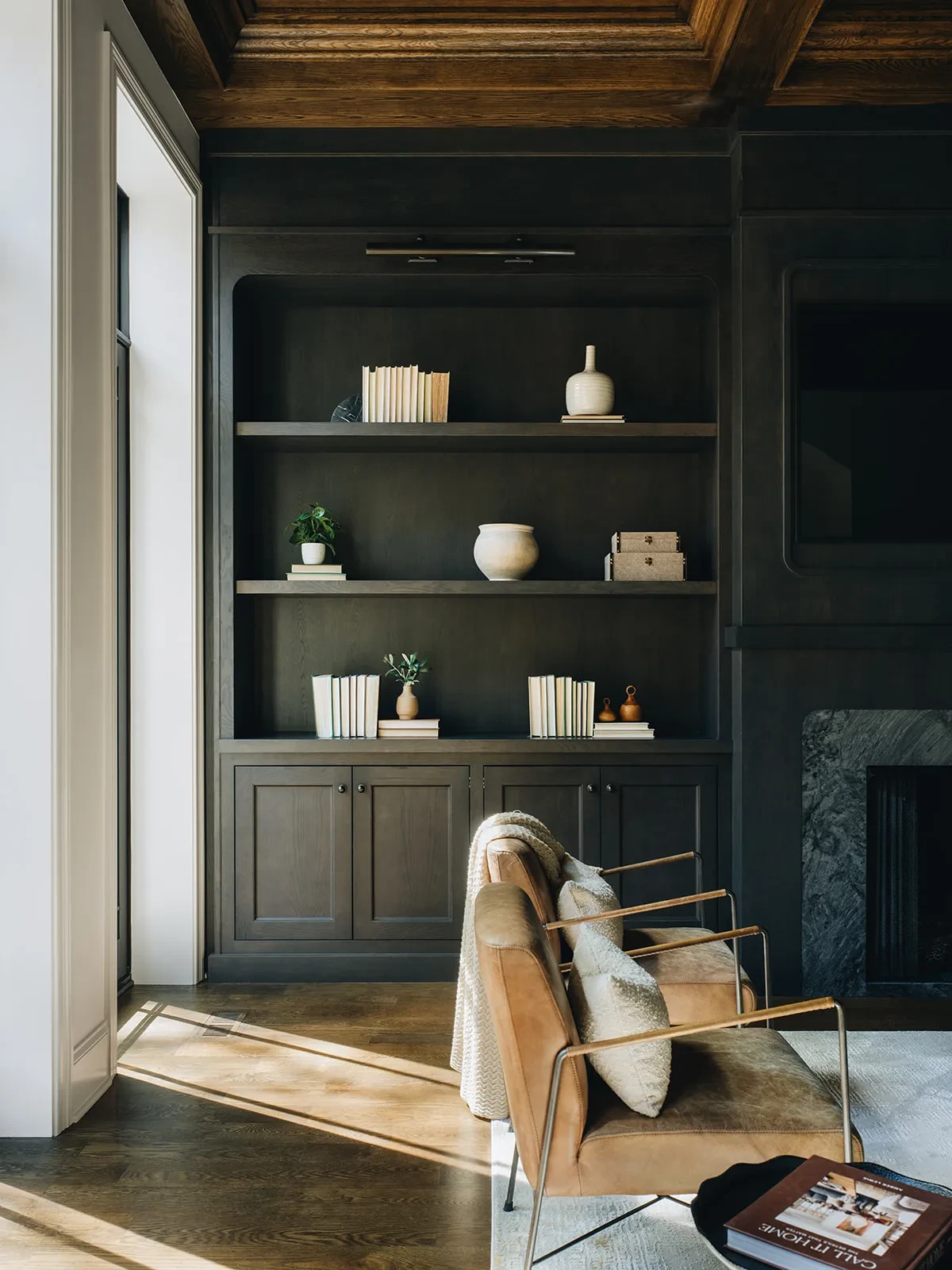 «Για μένα, τα πιο σκούρα χρώματα δίνουν ζεστασιά και θαλπωρή, που αγαπώ πολύ», λέει η Thompson, ιδρύτρια της Urbane Home, γνωστής για τις πολυτελείς αναπτύξεις της στην πόλη. «Όταν τα συνδυάζεις με ξύλο, υφές και φυσικό φως, το αποτέλεσμα είναι γήινο και φέρνει το απαραίτητο cozy αίσθημα στον χώρο.» Αυτή η φιλοσοφία διαμόρφωσε ένα από τα πιο φιλόδοξα έργα της: τη μετατροπή μιας κατοικίας 150 ετών στην Old Town του Σικάγο, μια γοητευτική γειτονιά με λιθόστρωτους δρόμους και πλούσια πολιτιστική ιστορία.