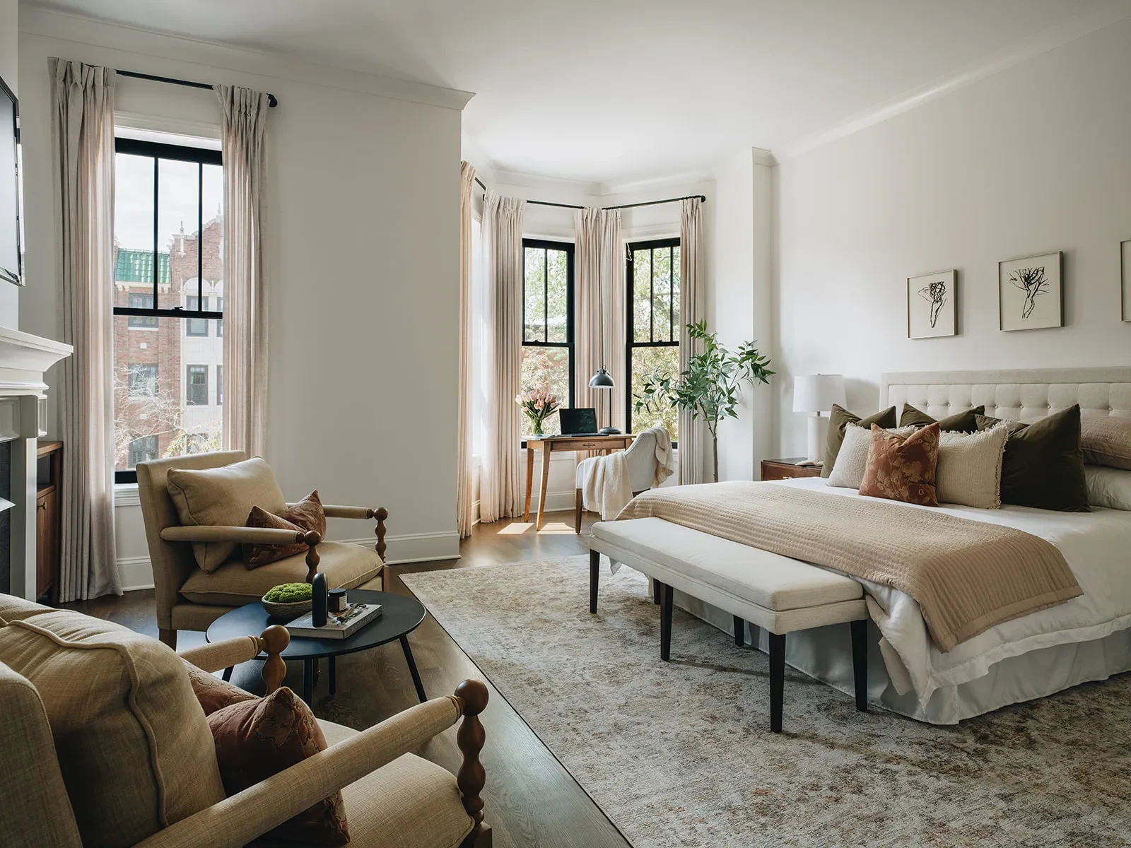 Το σχέδιο της κατοικίας επανασχεδιάστηκε σε ανοιχτό concept, προστέθηκε ένα υπνοδωμάτιο, φτάνοντας στα πέντε υπνοδωμάτια στο σύνολο, καθώς και πέντε μπάνια. Με περισσότερα από 550 τετραγωνικά μέτρα χώρου και ένα ανακαινισμένο carriage house 37 τετραγωνικών μέτρων, αλλά και μια νέα ταράτσα, το αποτέλεσμα είναι εντυπωσιακό. Αυτό που όμως κάνει το σπίτι πραγματικά μοναδικό είναι η επιδέξια χρήση του χρώματος - η μετρημένη παλέτα μαύρου, λευκού και ζεστών ουδέτερων τόνων που κυριαρχεί σε όλο τον χώρο.