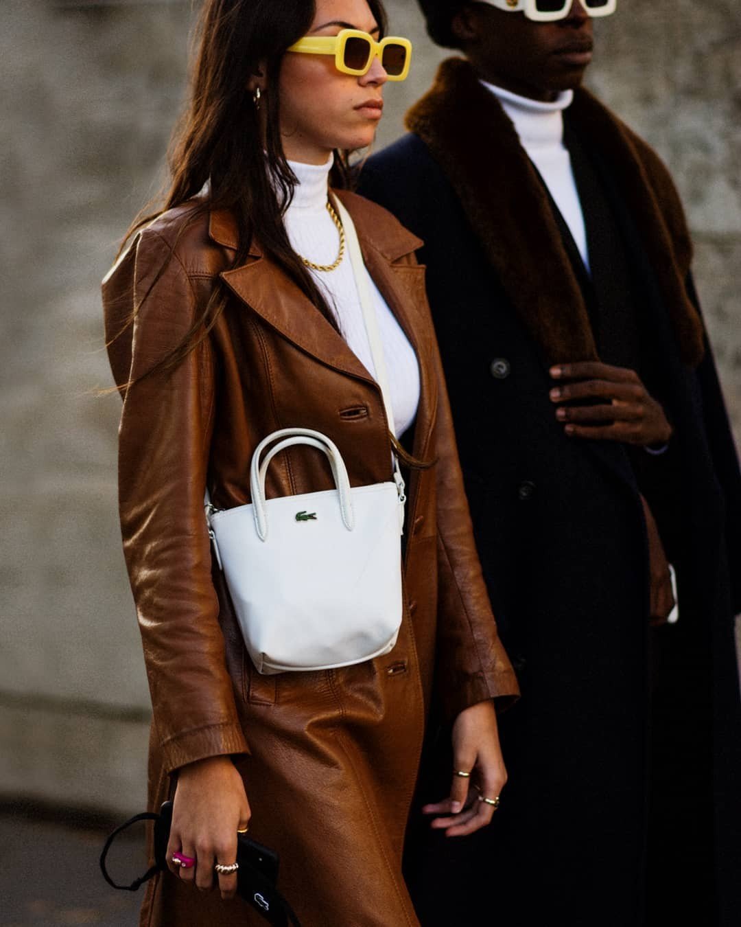Παρόλο που αποτελεί ένα από τα βασικά χρώματα του χειμώνα εδώ και πολλές δεκαετίες, τη φετινή σεζόν έχει αυξήσει κατά πολύ τη φήμη του, κάνοντας όλες μας να θέλουμε να το φοράμε συνεχώς. Οι αποχρώσεις τους είναι πολλές αλλά αυτή που ξεχωρίζει είναι η choco brown. Θα το συναντήσετε σε όλα τα κομμάτια, από παλτό μέχρι αξεσουάρ αλλά και σε όλα τα υφάσματα. Σας προτείνουμε να δοκιμάσετε ένα leather suit, το οποίο μπορεί να σταθεί σε πλήθος περιστάσεων.