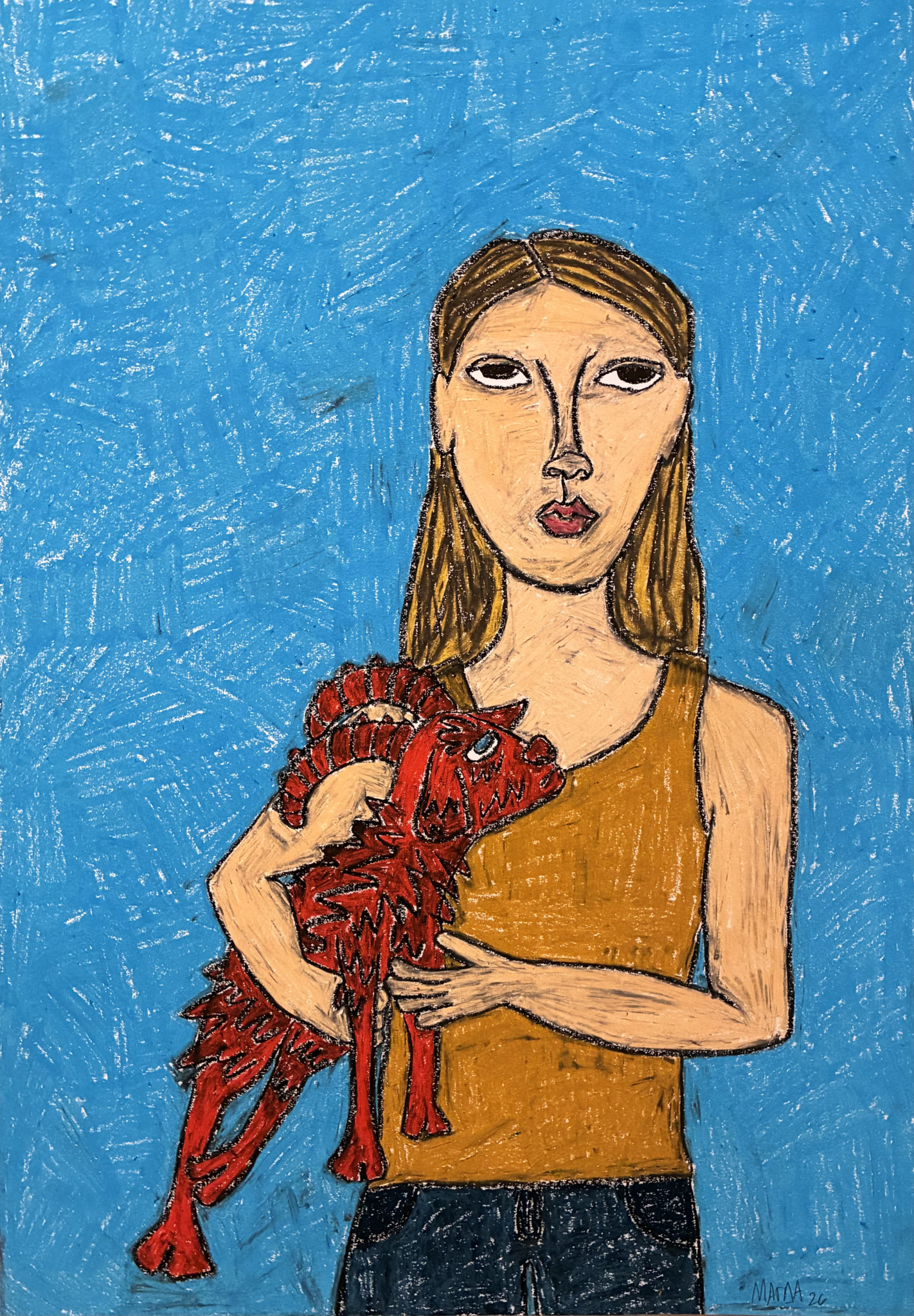 Αντλώντας από προσωπικά βιώματα, από τα χρόνια που έζησε στο εξωτερικό μέχρι την επιστροφή της στην Ελλάδα, η καλλιτέχνιδα δημιουργεί ένα εικαστικό σύμπαν όπου η νοσταλγία, η παιδική μνήμη και οι ρίζες συναντούν την επιμονή και την εξερεύνηση. Με αφορμή την έκθεση, μιλήσαμε μαζί της για τις κατσίκες που έγιναν σύμβολο της δουλειάς της, για τη διαδικασία της δημιουργίας και για τον τρόπο με τον οποίο η Τέχνη μπορεί να λειτουργήσει ως τρόπος κατανόησης του εαυτού και του κόσμου γύρω μας.