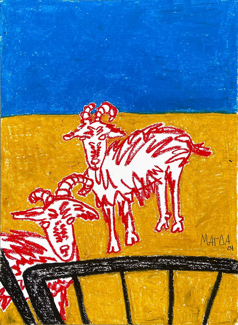 Είναι μια ωδή στην ξενιτιά και στην κατσίκα. Την παρουσιάζω στην γκαλερί APODEC, στη Θεσσαλονίκη. Προέκυψε κάπως τυχαία όταν έστειλα ένα μήνυμα στην Τένια, την επιμελήτρια, και προς έκπληξή μου, ενώ δεν είχαμε ξαναμιλήσει, μου απάντησε, «τώρα σε σκεφτόμουν». Ταιριάξαμε κατευθείαν, ο χώρος της γκαλερί της είναι μικρός και με παραπέμπει σε μια μικρή φωλιά, ένα σπιτάκι για την κατσίκα μου, κάτι που τόσα χρόνια αναζητά. Αποτελεί αποκορύφωση ενός project που ξεκίνησε όταν μετανάστευσα στην Αμερική και συνέχισε όταν πρωτοεγκαταστάθηκα στην Αθήνα. Έχουν περάσει τρια χρόνια από τότε, και πλέον μπορώ να πω ότι νιώθω πιο "at home". Με συγκινεί που, παράλληλα με αυτήν την συναισθηματική μου καταστάλαξη, το έργο μου βρήκε και αυτό ένα σπίτι.