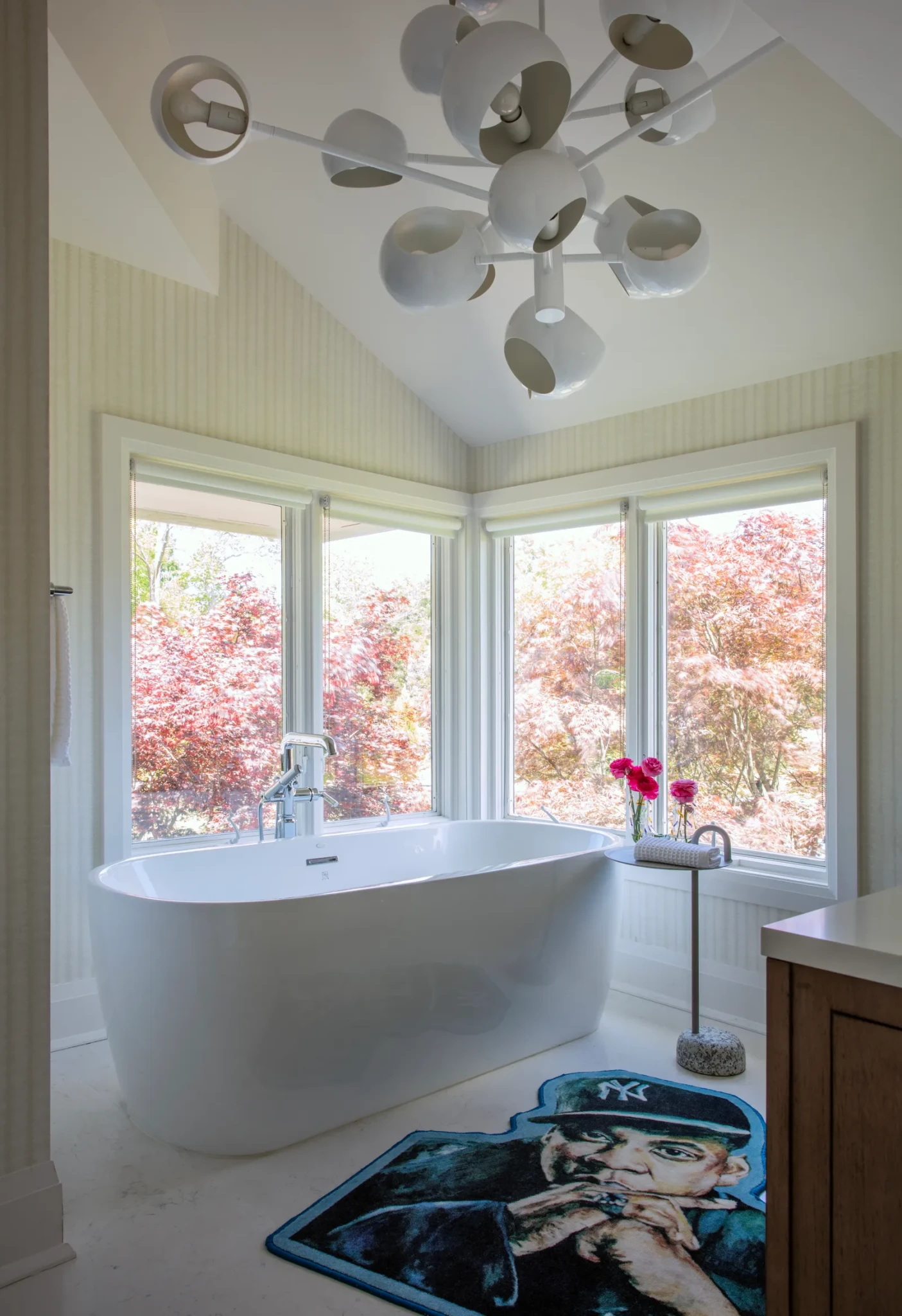 Σε μια ήσυχη περιοχή του Long Island, ένα σύγχρονο σπίτι πέντε υπνοδωματίων που λειτουργεί ως εξοχικό, μετατράπηκε σε μια αστική όαση όπου παντρεύεται η σύγχρονη αρχιτεκτονική με την strteet pop κουλτούρα της Νέας Υόρκης. Η αναδιαμόρφωση του χώρου ανατέθηκε στην Shanna Gatanis, μια designer γνωστή για το πάθος της για χρώμα, υφή και urban αισθητική, η οποία πριν από την καριέρα της στον σχεδιασμό εσωτερικών χώρων, ήταν roadie για καλλιτέχνες όπως ο Bob Dylan.