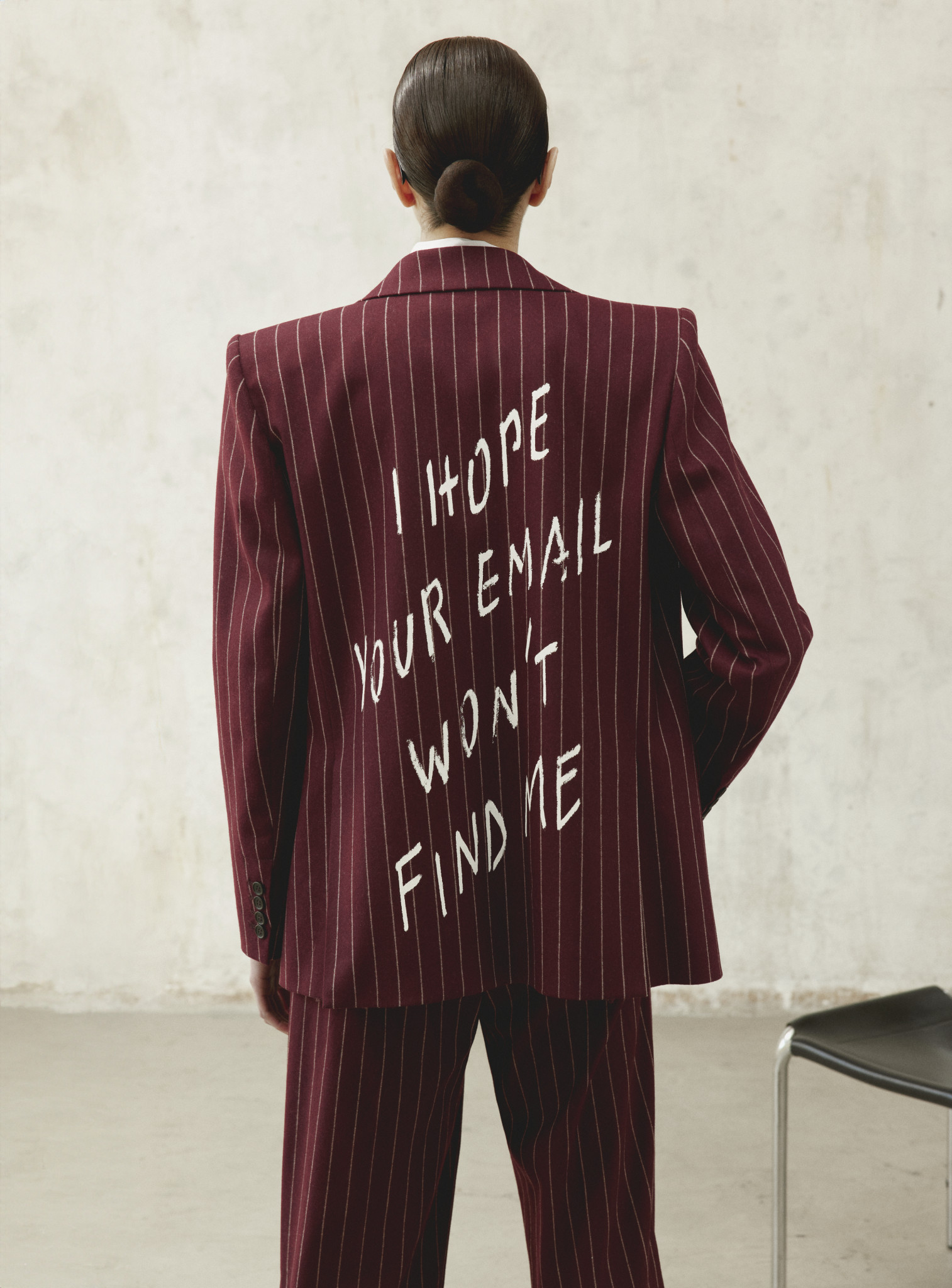 Η γυναίκα που φαντάστηκα είναι εκείνη που δεν έχει τίποτα να αποδείξει. Είναι γοητευτική, βαθιά συνδεδεμένη με τη σύγχρονη κουλτούρα, και σαγηνεύει μέσα από την εξυπνάδα και το μυστήριό της, ακόμα κι αν επιλέγει ανδρικά ρούχα.