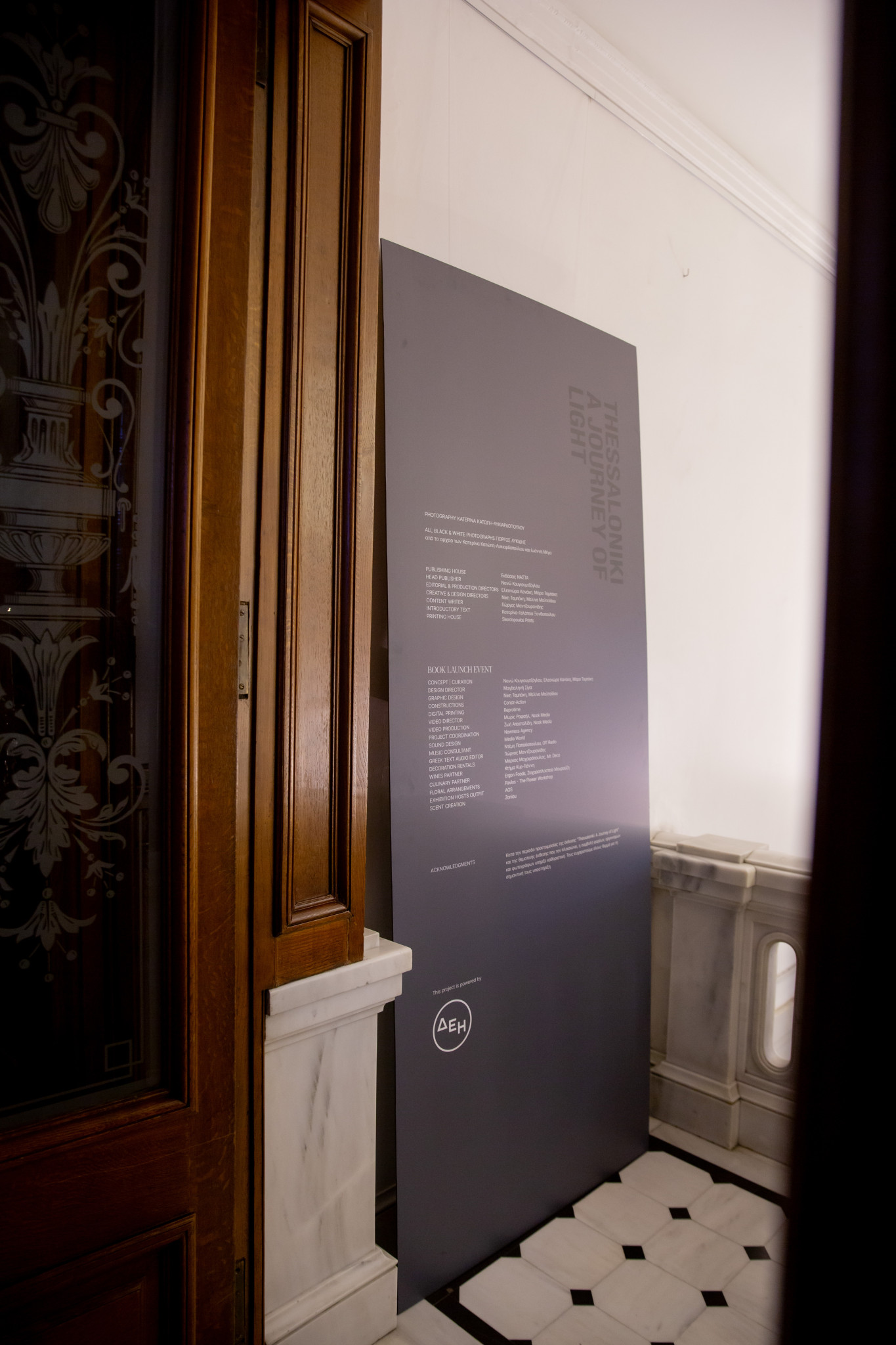 Με μια σκηνογραφημένη αισθητηριακή διαδρομή, οι καλεσμένοι βίωσαν ένα ταξίδι αφύπνισης στο φως της Θεσσαλονίκης του χθες και του σήμερα. Με το πέρασμα από το κατώφλι του επιβλητικού κτιρίου, υπερμεγέθεις φωτογραφίες από το λεύκωμα εισήγαγαν τους προσκεκλημένους στο πνεύμα της έκθεσης.