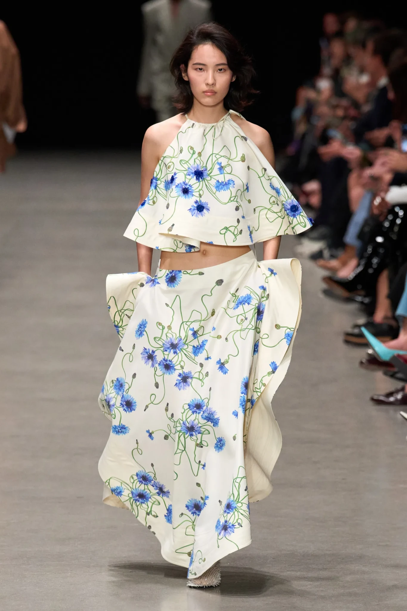 Οι σιλουέτες αέρινες και γεμάτες κίνηση μεταφράστηκαν σε raffia dresses, διαφανή υλικά που έπαιζαν με το φως, και πρωτοποριακά «φυτικά φτερά» που έδιναν την αίσθηση της πλούσιας υφής, βασισμένα πάντα στη βιωσιμότητα. Άλλωστε, το fashion label είναι γνωστό για την υπεράσπιση των δικαιωμάτων των ζώων και την άρνηση του να χρησιμοποιεί υλικά που προέρχονται από αυτά. Η χρωματική παλέτα κινήθηκε σε φυσικούς τόνους, όπως λευκό, μπεζ και χακί αλλά και σε φωτεινά κοραλί, παστέλ γαλάζιο και πράσινο της μέντας.