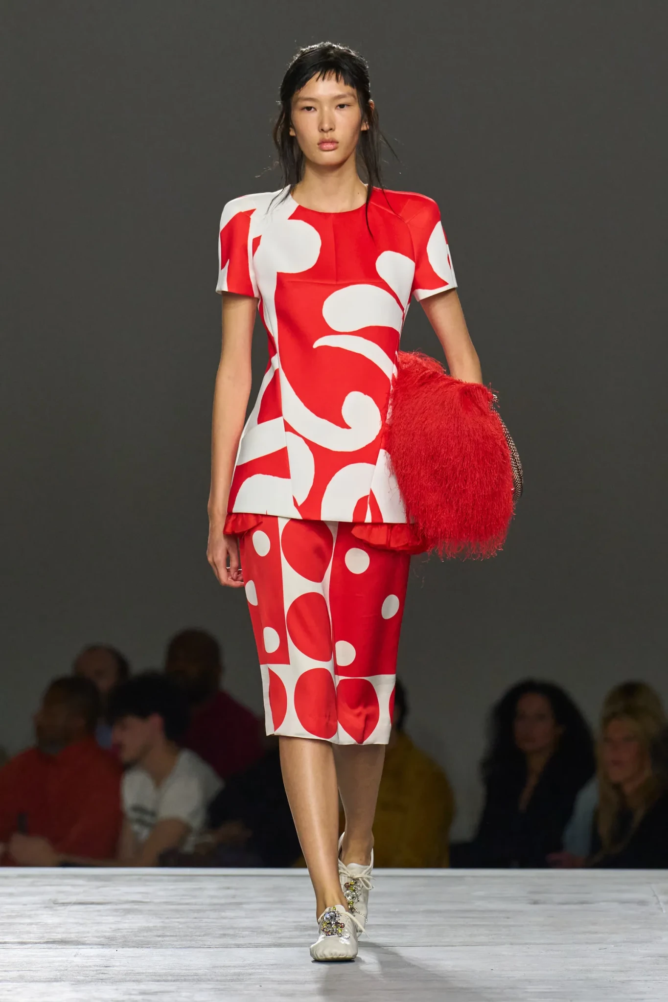 Τα prints, χαρακτηριστικό στοιχείο του οίκου, παρουσιάστηκαν σε νέες εκδοχές: γεωμετρικά μοτίβα, floral επεξεργασμένα με μεταλλική υφή και ασύμμετρες συνθέσεις που έδιναν την αίσθηση ζωγραφικού καμβά. Η χρήση μεταξιού και ελαφρών βαμβακερών υφασμάτων ενίσχυσε την κίνηση των δημιουργιών, κάνοντάς τα να μοιάζουν σχεδόν χορευτικά στην πασαρέλα.