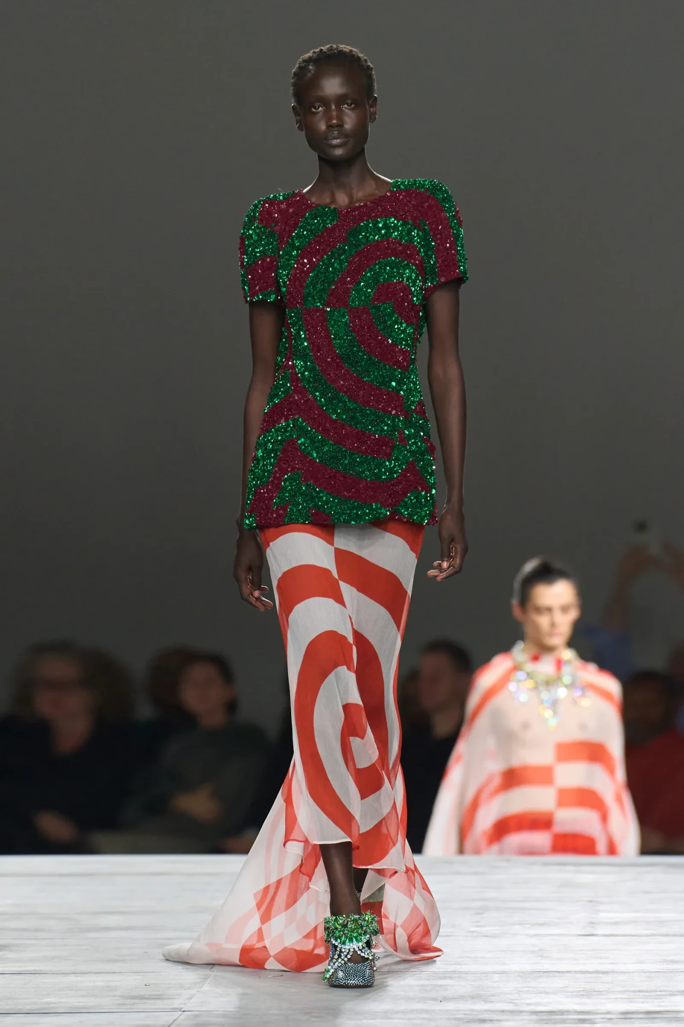 Η Stella McCartney παρουσίασε μια συλλογή που ανέδειξε την εξέλιξη της βιώσιμης μόδας σε υψηλή δημιουργία. Η πασαρέλα άνοιξε με την Helen Mirren να απαγγέλλει στίχους του “Come Together” των Beatles, θέτοντας τον τόνο μιας συλλογής που είχε ως στόχο να τονίσει την έννοια της ενότητας αλλά και το νέο όραμα του οίκου.