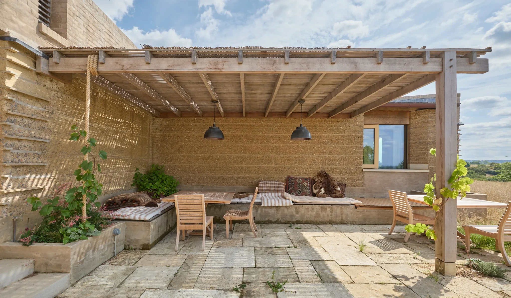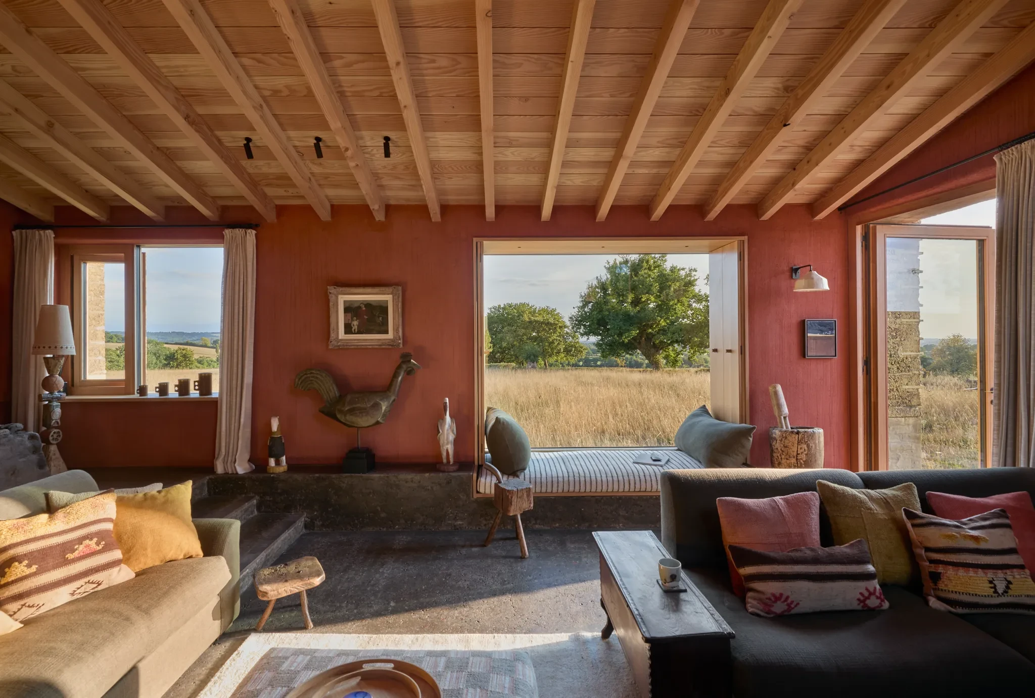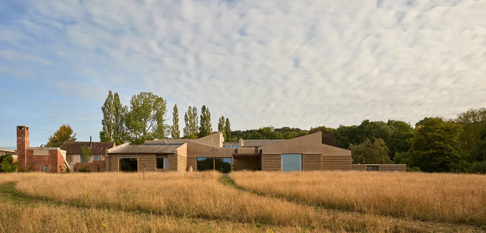 Στην καρδιά της βρετανικής υπαίθρου, στο Blackmore Vale, μια σύγχρονη εξοχική κατοικία επαναπροσδιορίζει την έννοια της αρχιτεκτονικής ένταξης στο τοπίο. Αντί να τοποθετηθεί επάνω στο έδαφος, το σπίτι μοιάζει να αναδύεται από αυτό, αξιοποιώντας την τεχνική του “rammed earth”, όπου το τοπικό χώμα συμπιέζεται σε στρώσεις και μετατρέπεται σε συμπαγείς τοίχους με έντονη φυσική υλικότητα. Η φιλοσοφία του έργου βασίζεται στη λογική της επιστροφής στην πρώτη ύλη. Το ίδιο το οικόπεδο γίνεται πηγή κατασκευής, μειώνοντας το περιβαλλοντικό αποτύπωμα και ενισχύοντας τη σχέση ανάμεσα στο κτίριο και το έδαφος που το στηρίζει.