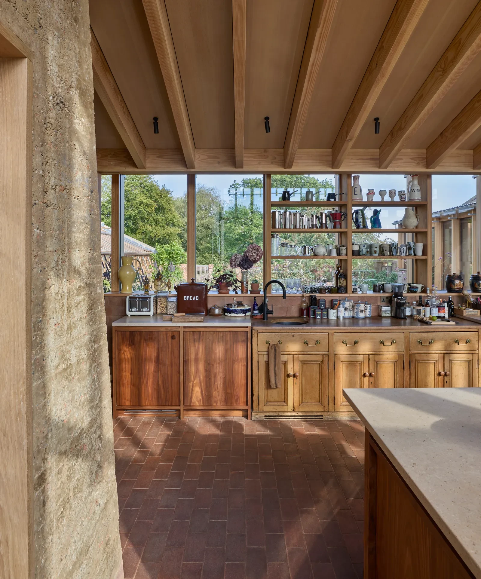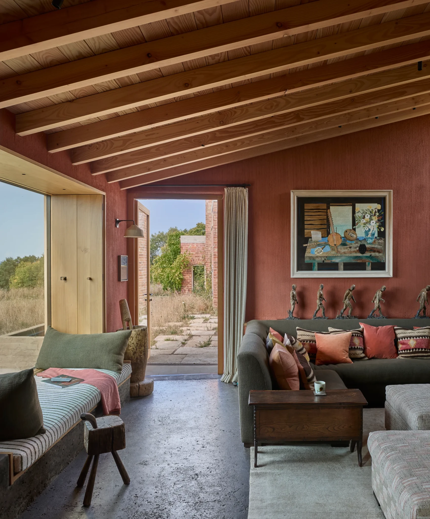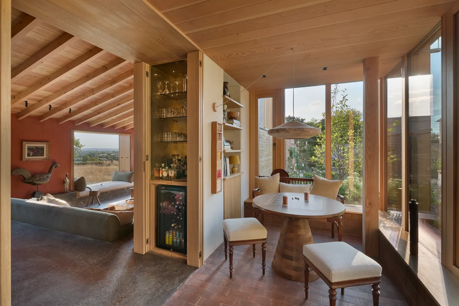 Στην καρδιά της βρετανικής υπαίθρου, στο Blackmore Vale, μια σύγχρονη εξοχική κατοικία επαναπροσδιορίζει την έννοια της αρχιτεκτονικής ένταξης στο τοπίο. Αντί να τοποθετηθεί επάνω στο έδαφος, το σπίτι μοιάζει να αναδύεται από αυτό, αξιοποιώντας την τεχνική του “rammed earth”, όπου το τοπικό χώμα συμπιέζεται σε στρώσεις και μετατρέπεται σε συμπαγείς τοίχους με έντονη φυσική υλικότητα. Η φιλοσοφία του έργου βασίζεται στη λογική της επιστροφής στην πρώτη ύλη. Το ίδιο το οικόπεδο γίνεται πηγή κατασκευής, μειώνοντας το περιβαλλοντικό αποτύπωμα και ενισχύοντας τη σχέση ανάμεσα στο κτίριο και το έδαφος που το στηρίζει.