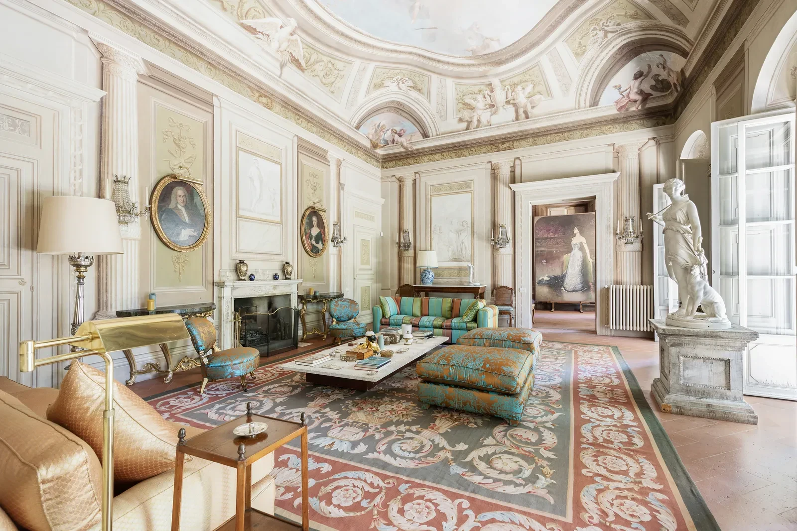 Το διαμέρισμα των 1.100 τ.μ. ανοίγει τις πόρτες του σε μια μεγαλοπρέπεια που συνδυάζει αναγεννησιακή αρχιτεκτονική και την ιταλική φινέτσα. Σαλόνια με ζωγραφισμένα ταβάνια και επιβλητικά τζάκια διαδέχονται αίθουσες υποδοχής, ενώ η βιβλιοθήκη λειτουργεί σαν πνευματικό καταφύγιο γεμάτο φως. Η είσοδος οδηγεί σε έναν από τους σπάνιους κήπους 700 τ.μ., πραγματικό θησαυρό μέσα στην πόλη. Στο ισόγειο, οι 300 τ.μ. της κάβας αποτελούν έναν χώρο ευέλικτο, έτοιμο να προσαρμοστεί σε σύγχρονες ανάγκες, από wine cellar μέχρι wellness area ή ιδιωτικό cinema.