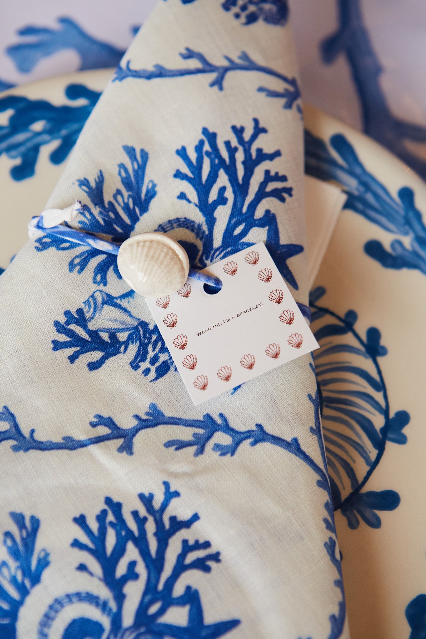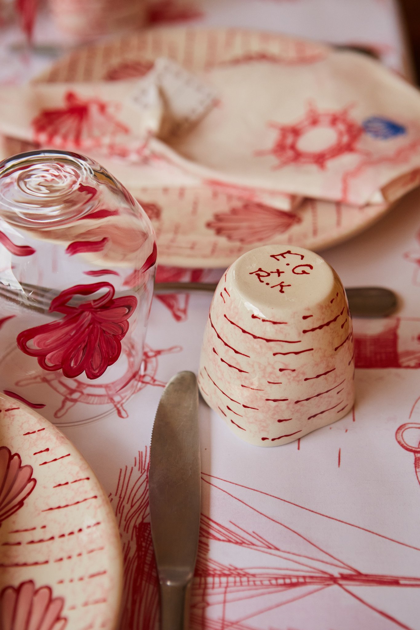 E.G.: Τα μοτίβα που χρησιμοποιήθηκαν είναι από τη συλλογή SS25 "Sea Poetry", που δημιουργήθηκαν custom για το brand στο Como. Η βασική επιρροή για τα prints αυτά ήταν όλος ο θησαυρός της θάλασσας που μαζεύουν τα παιδιά στις παραλίες. Θέλαμε να δώσουμε έμφαση στον ενθουσιασμό των παιδιών σε όλα αυτά που ανακαλύπτουν κι εντυπωσιάζονται από τον μαγικό κόσμο της θάλασσας. Γι' αυτό η συλλογή αποτυπώνει κοχύλια, κοράλλια και «διαμάντια» της θάλασσας. Αυτό το θέμα αναπτύσσεται και στη home collection και πιο συγκεκριμένα στο art de la table.