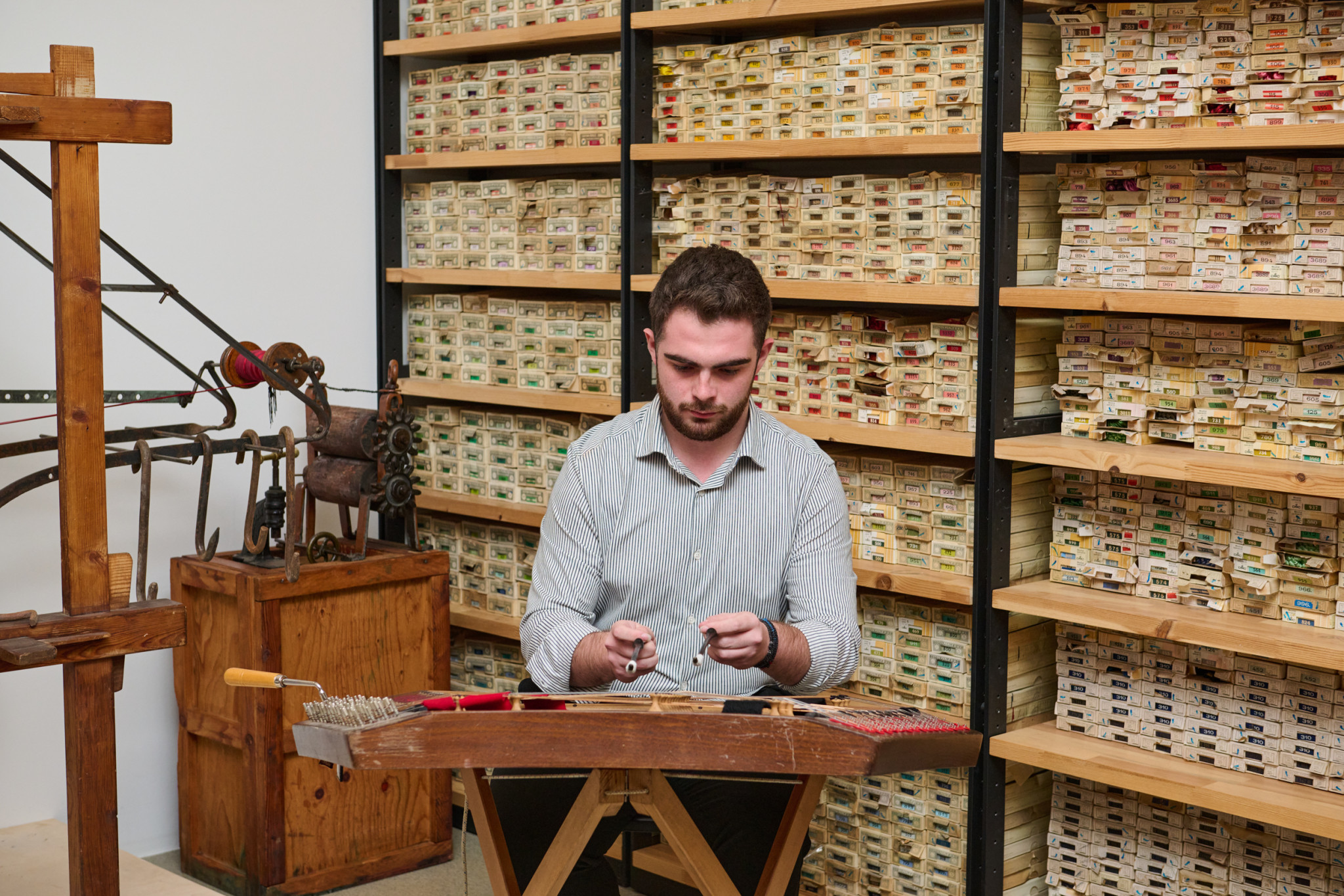 Ανάμεσα σε αρχειακά υλικά, ιστορικούς αργαλειούς Jacquard και τον διακριτικό ήχο ενός ζωντανού σαντουριού, ο χώρος μετατράπηκε σε μια πολυαισθητηριακή εμπειρία. Η κα Βιργινία Ματσέλη, εθνολόγος, κοινωνική ανθρωπολόγος και εμπνεύστρια της αναβίωσης του ΝΗ.Μ.Α., καθοδήγησε τους καλεσμένους σε ένα ταξίδι αφήγησης, αποκαλύπτοντας το εργαστήριο ως έναν ζωντανό φορέα πολιτιστικής μνήμης, όπου κάθε νήμα φέρει το αποτύπωμα του ανθρώπινου χεριού.