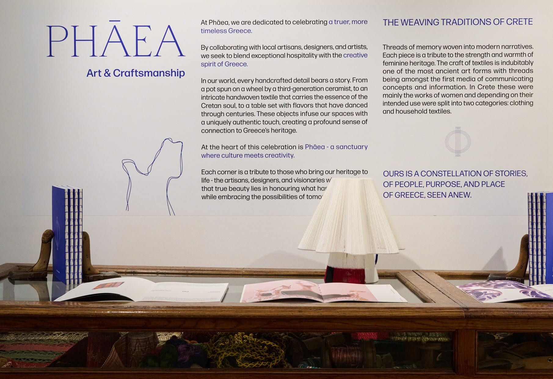 Την ατμόσφαιρα συμπλήρωσε το Reywal, μια σειρά χειροποίητων φωτιστικών εγκαταστάσεων της Joy Stathopoulou. Φωτεινά γλυπτά, υφασμένα με εκατοντάδες πολύχρωμα νήματα, δημιούργησαν έναν διακριτικό διάλογο ανάμεσα στο φως και το υλικό, το παρελθόν και το παρόν. Στο ίδιο πλαίσιο, η Phāea παρουσίασε τη νέα της επιμελημένη έκδοση “Arts & Craftsmanship”, αφιερωμένη στις συνεργασίες της με Έλληνες δημιουργούς, από κεραμίστες και ζωγράφους έως σχεδιαστές και τεχνίτες, που διαμορφώνουν την αισθητική των χώρων της.