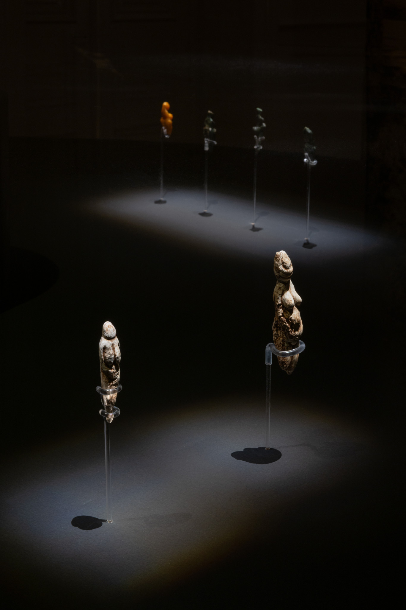 Στην έκθεση παρουσιάζονται συνολικά δέκα τέτοια έργα (μέσω πιστοποιημένων αντιγράφων), αποκαλύπτοντας ένα κοινό μορφολογικό λεξιλόγιο που εμφανίζεται σε διαφορετικές γεωγραφικές περιοχές. Μεταξύ αυτών περιλαμβάνονται η «Αφροδίτη του Lespugue», οι «Αφροδίτες του Grimaldi», η «Αφροδίτη του Savignano», η «Αφροδίτη του Dolní Věstonice», η «Αφροδίτη του Willendorf» και οι «Αφροδίτες της Parabita».