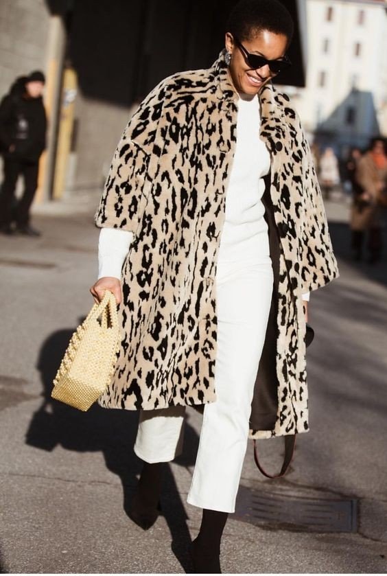 Μπορεί να έχουμε συνηθίσει το λευκό το καλοκαίρι αλλά πλέον κατέχει μία πολύ σημαντική θέση και στον χειμώνα. Θα σας χαρίσει μία νότα φωτεινότητας ακόμα και στις πιο μουντές ημέρες. Το total white look συμπληρώνει τέλεια ένα leopard παλτό. Για να δημιουργήσετε ένα σύνολο, το οποίο θα μπορεί να σας συνοδεύσει καθ' όλη τη διάρκεια της ημέρας, συνδυάστε απλά αλλά ευέλικτα κομμάτια. Ένα tailored pants μπορεί να ταιριάξει τέλεια με white shirt και cardigan. Τα ουδέτερα αξεσουάρ θα συμπληρώσουν την εικόνα σας.