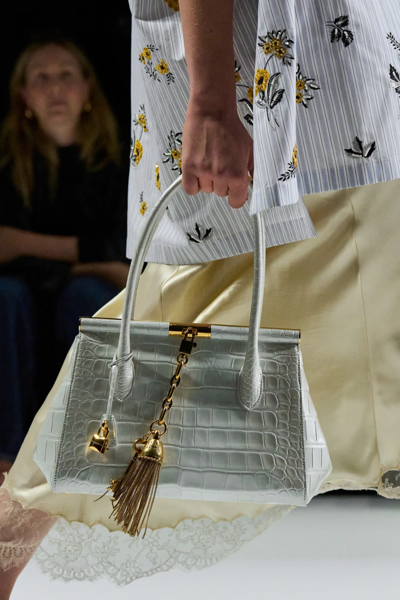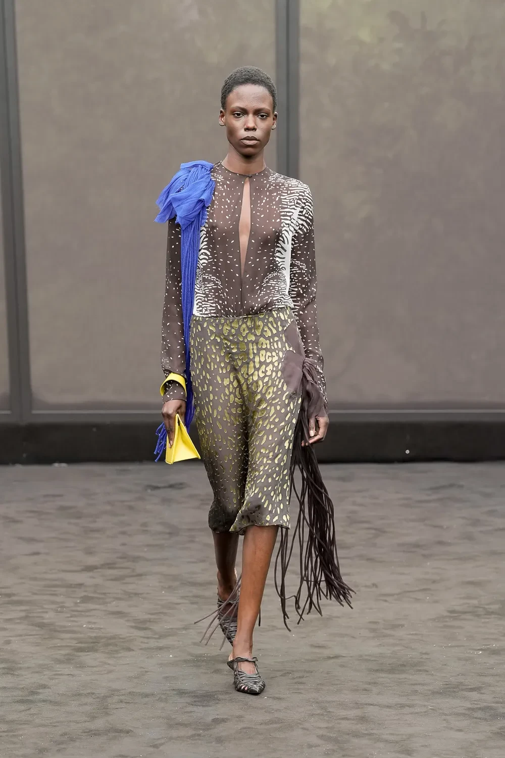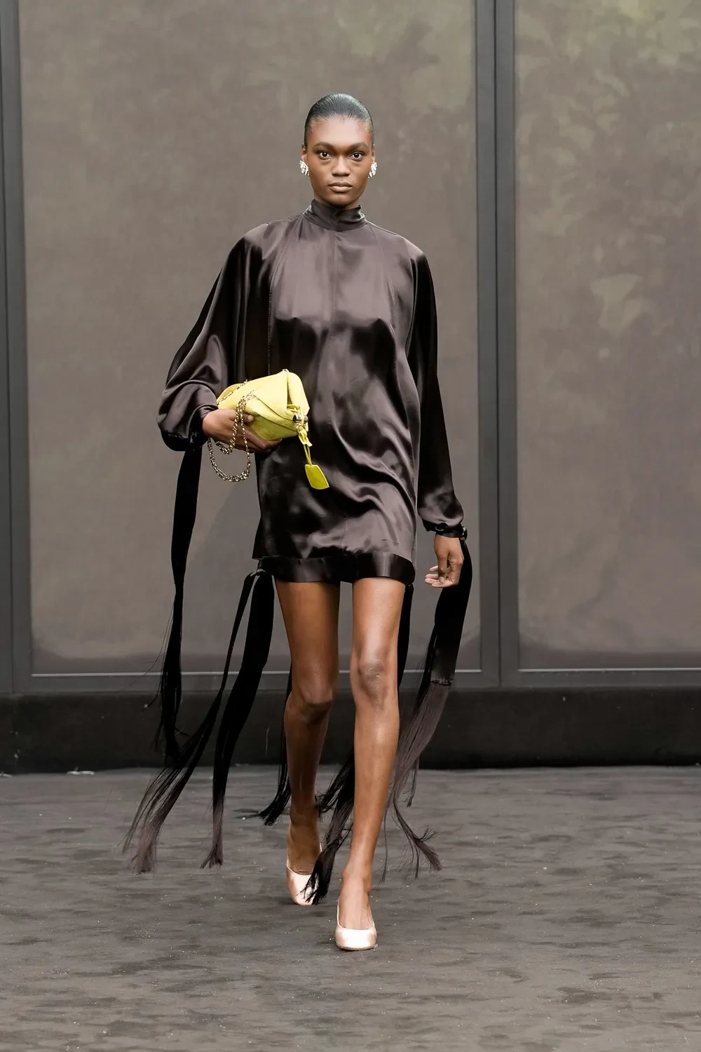 Τα αξεσουάρ -από slouchy clutches μέχρι πτυχωτούς σάκους- ενίσχυσαν το αφήγημα της λειτουργικής πολυτέλειας. Η συλλογή χαρακτηρίστηκε από ηρεμία, δομή και θηλυκότητα, χωρίς υπερβολές, με στόχο να αναδείξει την ουσία του οίκου μέσα από μια πιο σύγχρονη, γήινη αισθητική.