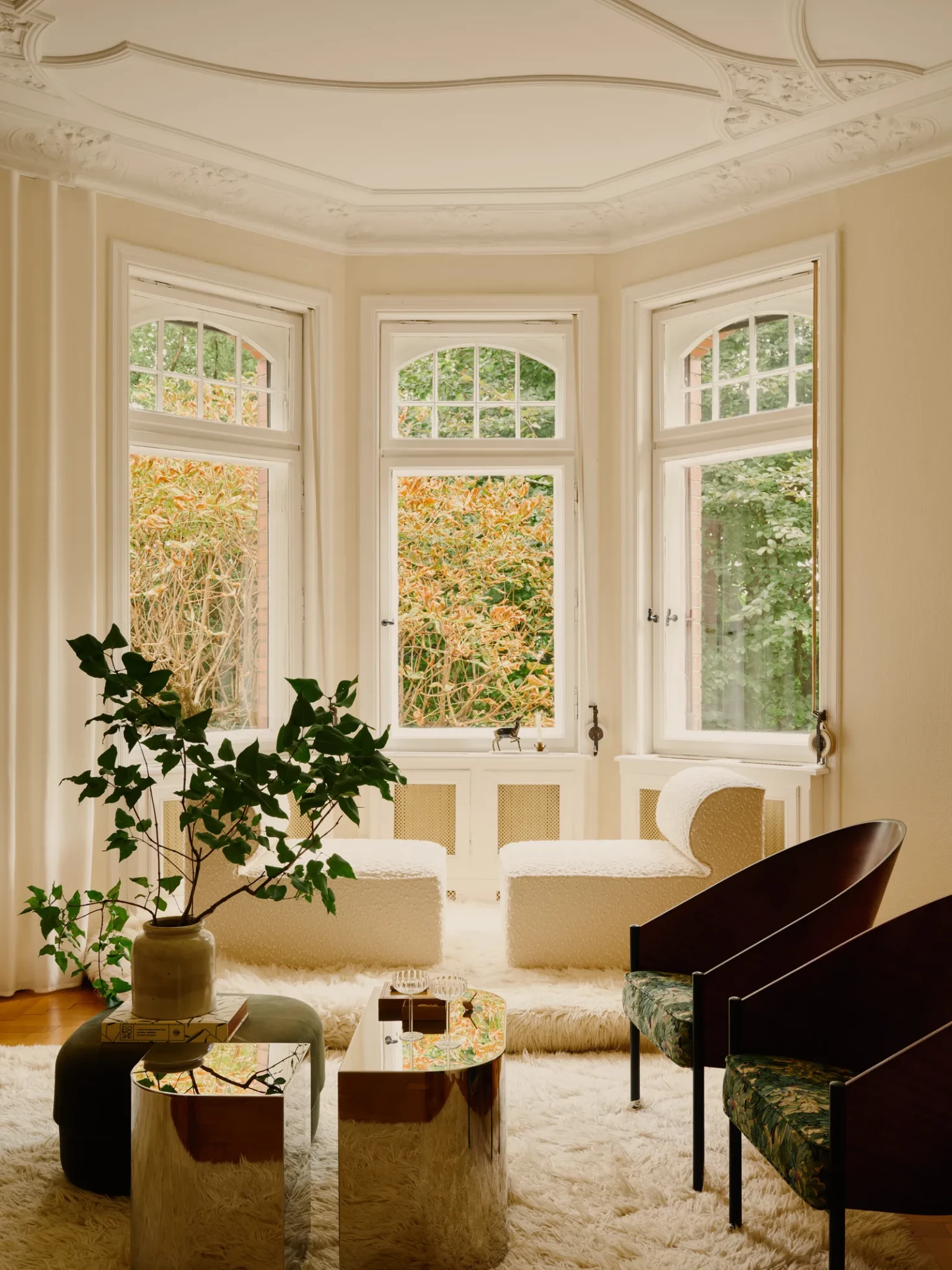 Αφού η Ladner έψαχνε για καιρό διαμέρισμα με το σύζυγό της, όταν αντίκρισε την τεράστια αίθουσα υποδοχής με τα εντυπωσιακά πατώματα και τις παραδοσιακές, αρχοντικές γραμμές των δωματίων εντυπωσιάστηκε. Το γεγονός ότι το διαμέρισμα είχε παραμείνει για καιρό άδειο δεν μείωσε την αίγλη του, αντίθετα, έδωσε στη σχεδιάστρια την ελευθερία να φανταστεί το τελικό αποτέλεσμα με καθαρό βλέμμα καθώς σύμφωνα με την ίδια: «Από την πρώτη στιγμή, είχα την αίσθηση ότι το διαμέρισμα μας περίμενε. Αυτή η εντύπωση έμεινε μαζί μας κατά τη διάρκεια της επίσκεψης, της υπογραφής του συμβολαίου και συνεχίζεται μέχρι σήμερα. Γρήγορα ανέπτυξα μια σαφή εικόνα των χρωμάτων, των υλικών και της ατμόσφαιρας. Η εσωτερική μου ώθηση να δημιουργήσω κάτι νέο ξύπνησε αμέσως. Ερωτεύτηκα ιδιαίτερα την κουζίνα , η οποία έχει άμεση πρόσβαση στη μεγάλη σκεπαστή βεράντα». Το εσωτερικό της κατοικίας βάφτηκε με ένα σκούρο, πλούσιο βουτυρένιο κίτρινο, που προσφέρει ζεστασιά και βάθος, ενώ παράλληλα χρησιμοποιήθηκε τόσο στις επιφάνειες όσο και στα έπιπλα, δημιουργώντας μια συνοχή σε όλο το διαμέρισμα.