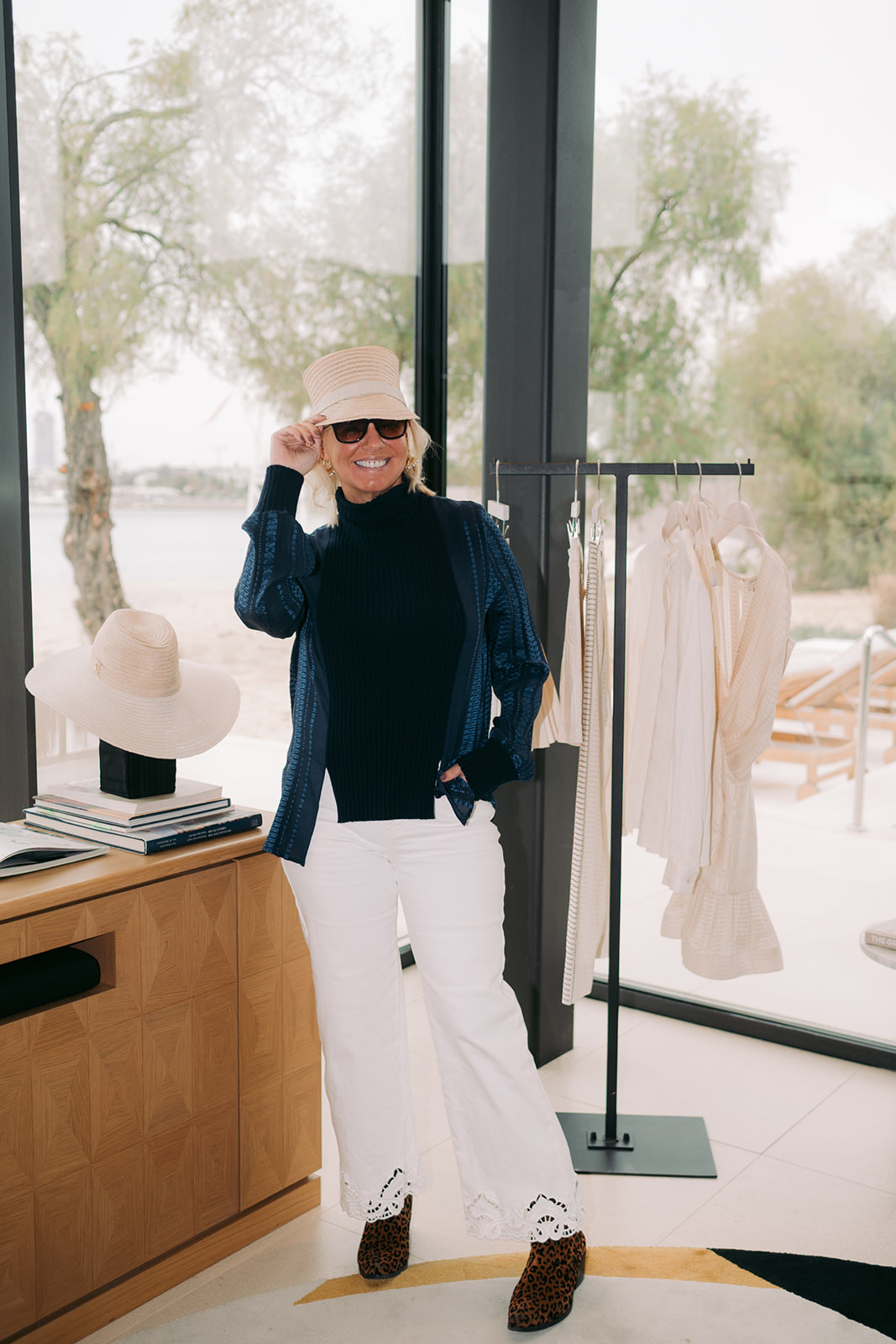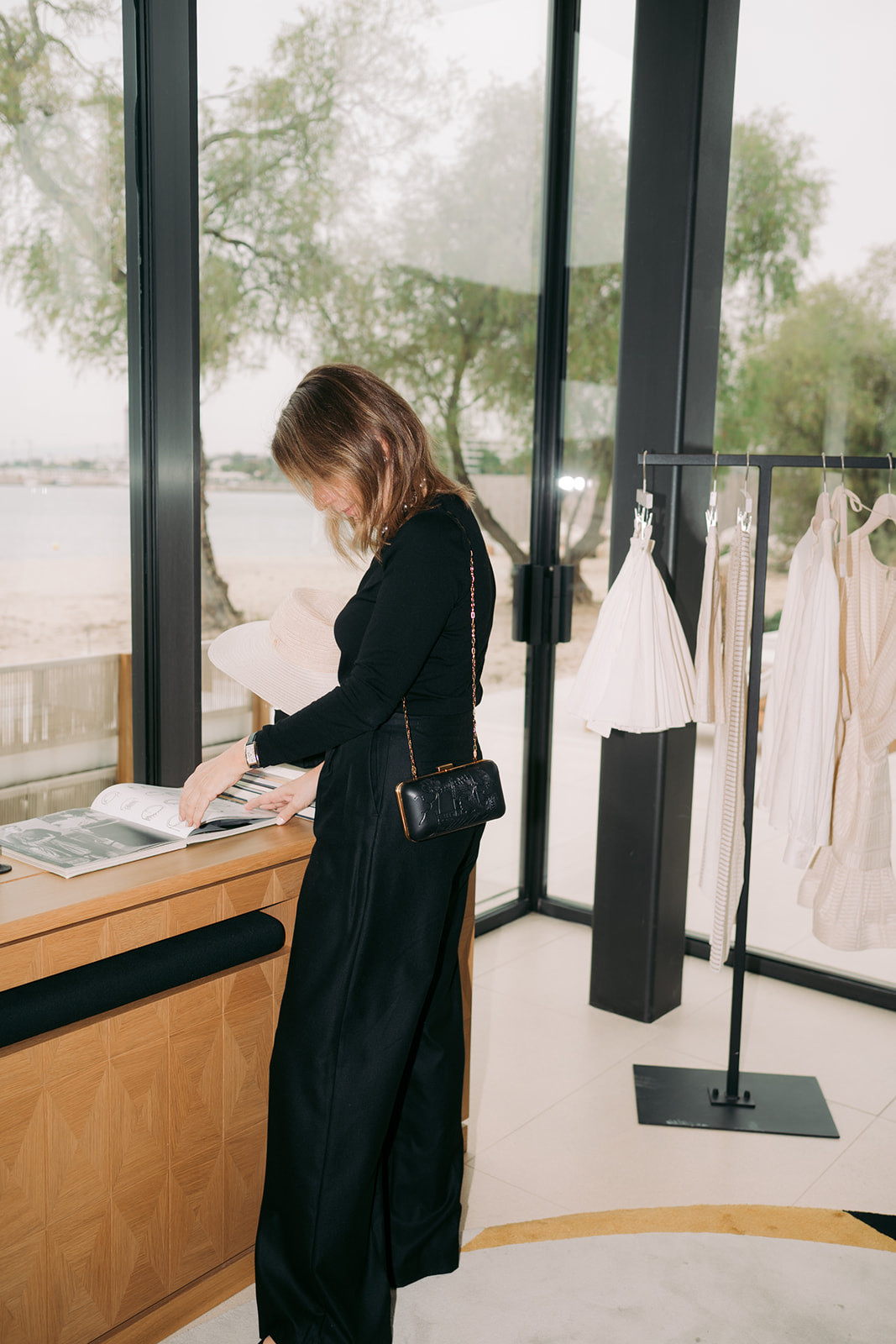 Η Villa 803 του One&Only Aesthesis, με θέα προς τη Γλυφάδα, αποτέλεσε το ιδανικό περιβάλλον για την παρουσίαση της συλλογής Άνοιξη/Καλοκαίρι ’26. Οι ανοιχτοί χώροι, το διάχυτο φως και η συνεχής παρουσία της θάλασσας διαμορφώνουν μια εμπειρία που παραπέμπει σε καλοκαιρινή απόδραση. Η αίσθηση είναι σχεδόν ναυτική, ακριβώς σαν ένα ταξίδι που ξεκινά χωρίς συγκεκριμένο προορισμό, αλλά με έντονη διάθεση εξερεύνησης.