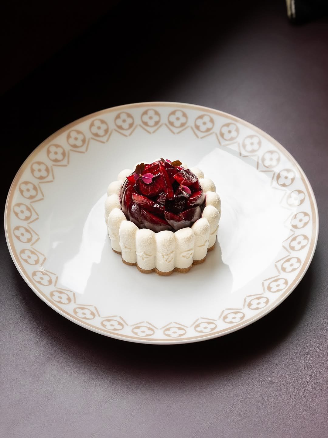 Από τα πρώτα του εμβληματικά γλυκά, το vacherin με τα πέταλα μαρέγκας σε σχήμα τριαντάφυλλου είναι αφιερωμένο στη γιαγιά του, Rosa. Η αγάπη του για τα σοκολατένια πέταλα και τις ζαχαρένιες ροζέτες βρήκε εδώ την πιο προσωπική της έκφραση. Μια παραλλαγή του παραμένει ακόμη στο menu του Plénitude.