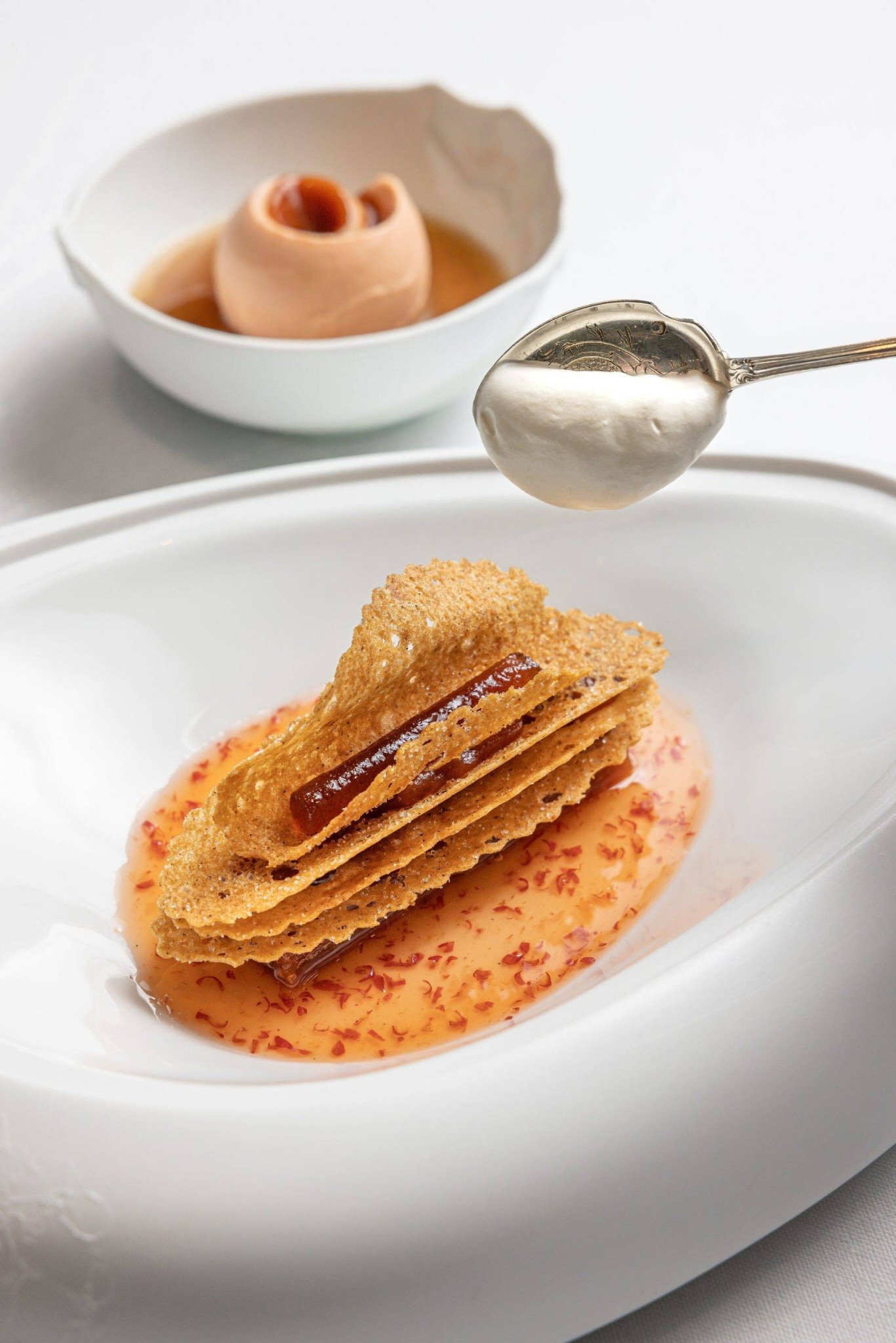 Η απόλυτη δημιουργία του –και σημείο αναφοράς στο Le Tout-Paris– χρειάστηκε τρία χρόνια πειραματισμού. «Ακολουθεί τους κανόνες του κλασικού mille-feuille: φύλλο, κρέμα και τίποτα άλλο. Αλλά είναι πολύ περισσότερα από αυτό. Απολαυστικό αλλά ελαφρύ, με το βούτυρο και τη ζάχαρη να αναδεικνύονται πραγματικά». Η ισορροπία ανάμεσα στην απλότητα και τη μοναδικότητα είναι το μυστικό της επιτυχίας του.