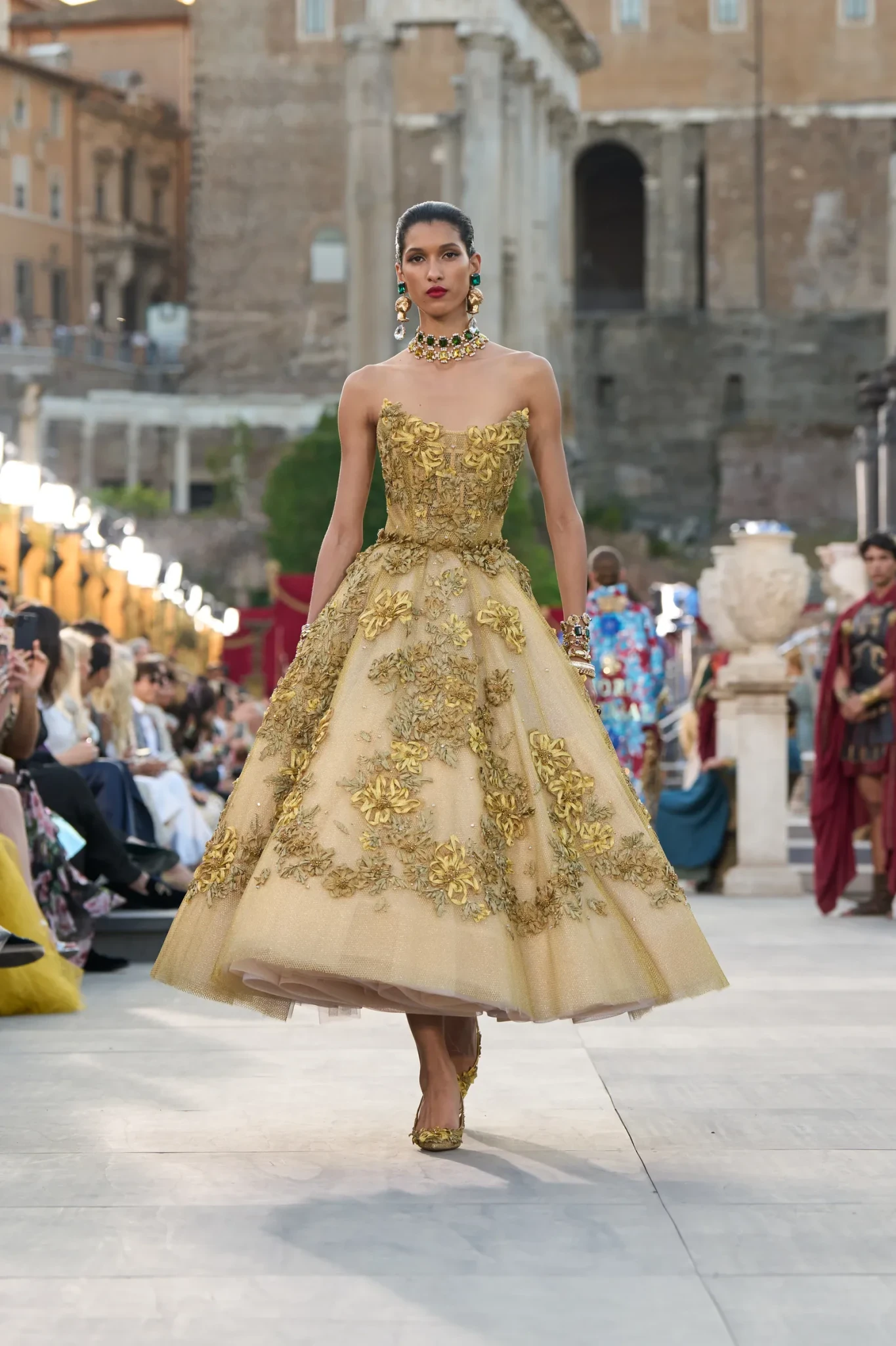 Μέσα στο χρυσό φως του δειλινού, ανάμεσα σε ερείπια που κουβαλούν αιώνες ιστορίας, το Ρωμαϊκό Φόρουμ μεταμορφώθηκε χθες σε θεατρικό σκηνικό για την παρουσίαση της συλλογής Alta Moda του οίκου Dolce&Gabbana. Η πασαρέλα έλαβε χώρα κατά μήκος της Via Sacra, του πρώτου δρόμου της Αρχαίας Ρώμης, συνδέοντας με μαεστρία το ιστορικό παρελθόν της πόλης με τη μεταπολεμική της υπερβολή - την αστική πολυτέλεια των δεκαετιών του ’50 και του ’60.