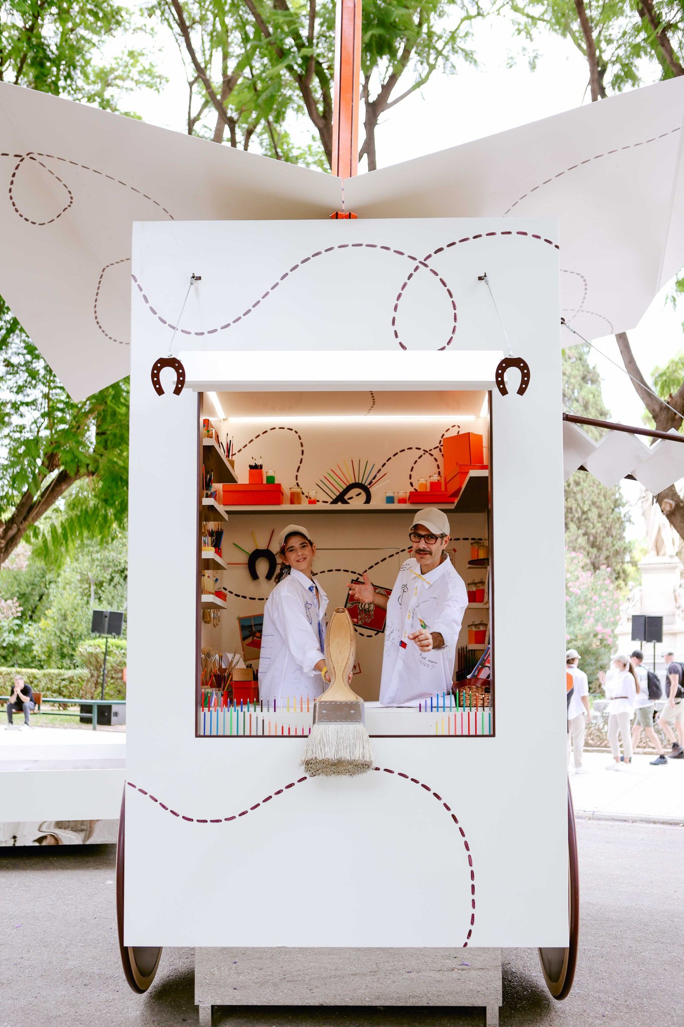 Οι επισκέπτες καλωσορίζονται από τους «αναβάτες του μολυβιού» -πρεσβευτές του σχεδίου του Hermès- και στη συνέχεια περιηγούνται σε διαφορετικά εργαστήρια. Εκεί τους περιμένουν βιωματικά projects, κινούμενα εργαστήρια, πρωτότυπες καλλιτεχνικές δράσεις και ασκήσεις που καλλιεργούν τον αυθορμητισμό. Η εμπειρία δεν περιορίζεται σε μια απλή περιήγηση: οι συμμετέχοντες έχουν την ευκαιρία να συζητήσουν, να ανταλλάξουν ιδέες και να ανακαλύψουν πώς ο Hermès αφηγείται ιστορίες μέσα από το σχέδιο. Λέξεις, μικρές φράσεις και φωτεινές πινελιές μετατρέπονται σε κομμάτια ενός καμβά, δημιουργώντας έναν κόσμο όπου η παιδικότητα συνυπάρχει με την τέχνη.