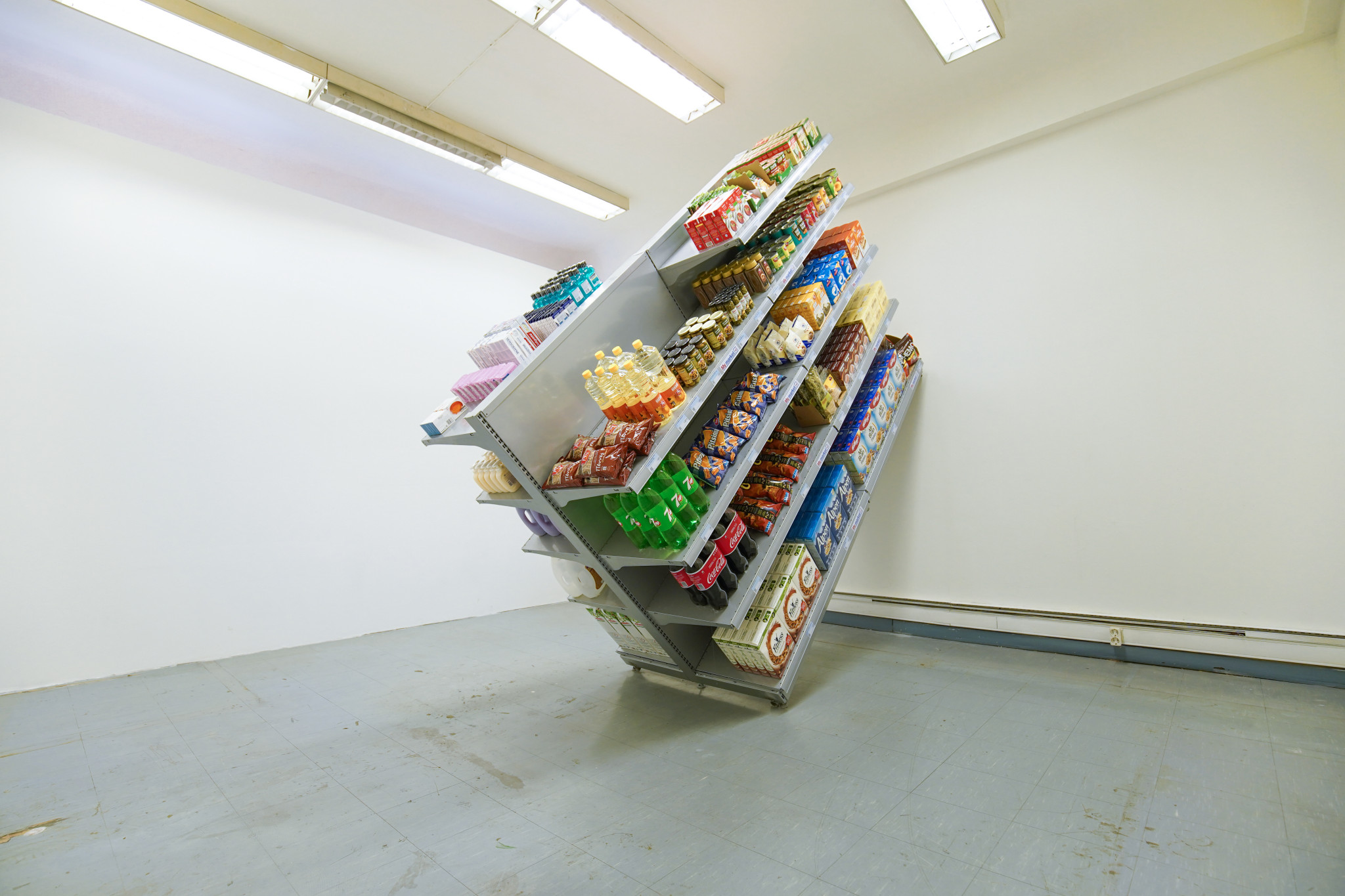 Saeborg, Pigpen, 2016. Παραχώρηση της καλλιτέχνιδος. Άποψη εγκατάστασης από την 6η Μπιενάλε της Αθήνας 2018 «ΑΝΤΙ». Φωτογραφία: Νύσος Βασιλόπουλος. Sirous Namazi, Leaning Horizontal II , 2018. Παραχώρηση του καλλιτέχνη και της Galerie Nordenhake, Στοκχόλμη / Βερολίνο. Άποψη εγκατάστασης από την 6η Μπιενάλε της Αθήνας 2018 «ΑΝΤΙ». Φωτογραφία: Νύσος Βασιλόπουλος.