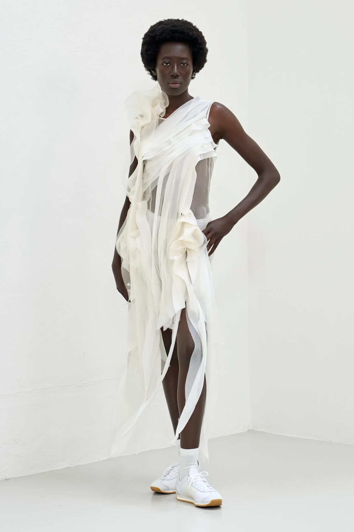 Αυτή τη σεζόν, οι σχεδιαστές της Κοπεγχάγης είχαν στο μυαλό τους τα σύννεφα, υμνώντας ό,τι είναι αέρινο, απαλό, φουσκωτό και εύθραυστο. Στην πολυαναμενόμενη επιστροφή της στην Εβδομάδα Μόδας της Κοπεγχάγης, μετά τη μετακόμισή της στο Παρίσι, η Cecilie Bahnsen παρουσίασε φορέματα και φούστες σαν σύννεφα, με τις χαρακτηριστικές της ογκώδεις σιλουέτες. Το λευκό φόρεμα της Freya Dalsjø, διπλωμένο σαν πέπλο, μας θύμισε μια λαχταριστήμπάλα βανίλια soft serve σε χωνάκι, ενώ το αποδομημένο φόρεμα της Anne Sofie Madsen ήταν τόσο ανάλαφρο όσο ένα σύννεφο cirrus, ή αλλιώς θύσανοι είναι πολύ λεπτά νέφη που μοιάζουν με τούφες μαλλιών και παρατηρούνται κυρίως σε μεγαλύτερα υψόμετρα, όμως στα αλήθεια ήταν ίδιο με αυτά!